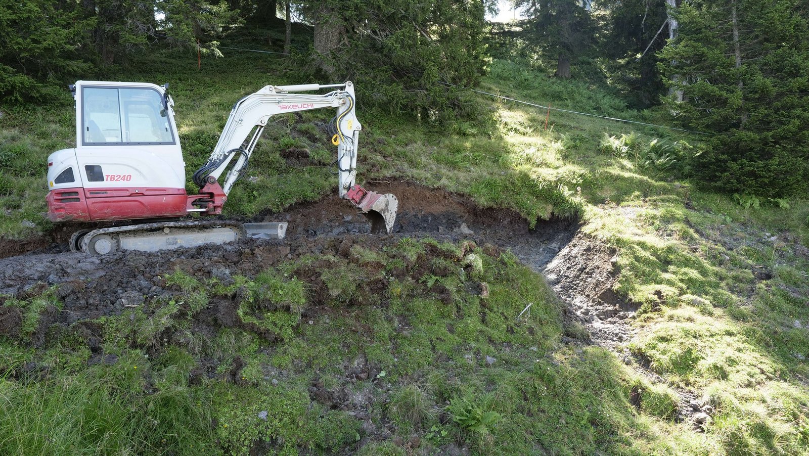 Paul Bellmont ist Verwaltungsrat der OAK, der Oberallmeindkorporation Schwyz, und gleichzeitig deren Werkmeister. Mit dem Bagger hat Bellmont die Quelle vorsondiert, wie es im Fachjargon heisst: Er hat Material ausgehoben und dabei den Weg des Wassers freigelegt. «Das Ziel ist, das Wasser möglichst sauber fassen zu können», erklärt der Fachmann.