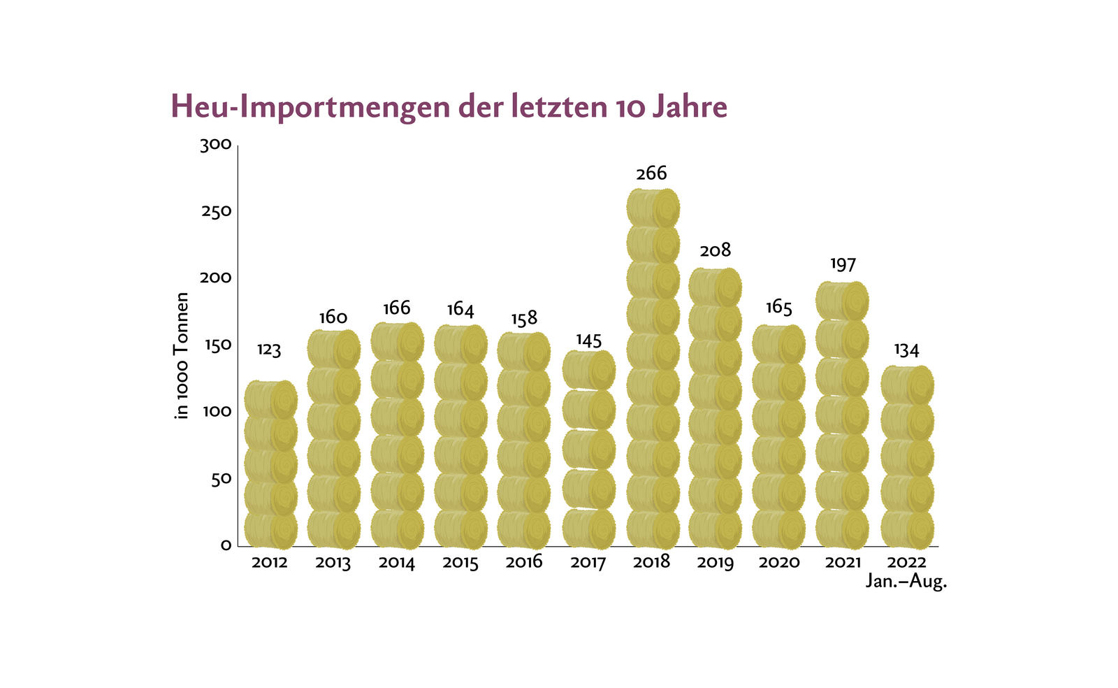 Fakt ist aber, dass nur noch wenige Landwirte einen grösseren Futtervorrat anlegen. Die Nachfrage ist schnelllebig, wodurch bei Futterknappheit sofort grosse Nachfrage-Spitzen entstehen und die Preise hochschnellen. Dies war auch im Sommer 2022 der Fall, wie die Zahlen zeigen, doch die Lage hat sich wieder etwas beruhigt.