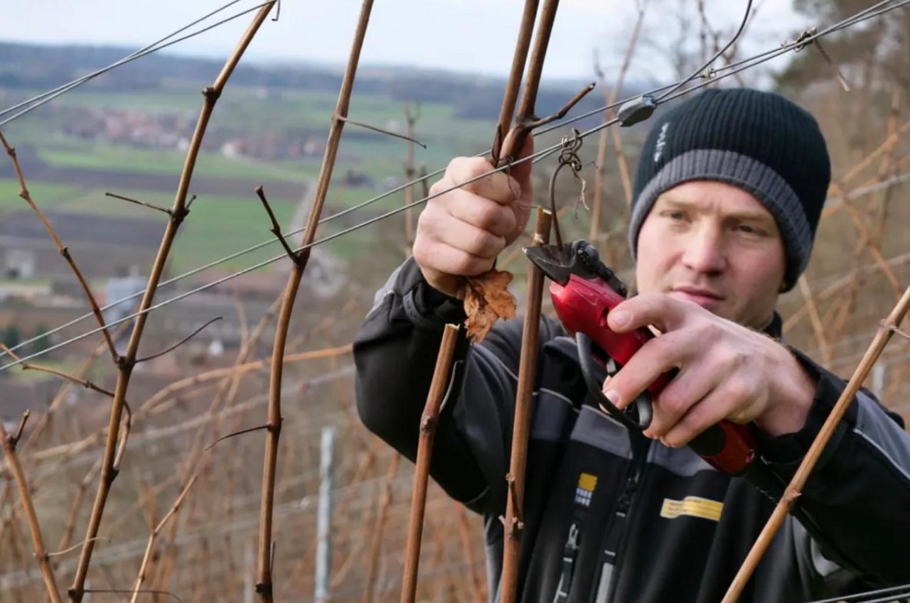 Auf dem Rebberg von Landwirt Michael Frei in Unterstammheim ZH hat man den besten Ausblick auf die ländlich geprägte Landschaft, das flache Ackerland und – zahlreiche Rebberge. Es kommt daher nicht von ungefähr, dass der unternehmerische Junglandwirt auch auf Lohnarbeiten im Rebbau setzt. «Die Arbeit gefällt mir», sagt Frei. Das glaubt man ihm sofort, wenn man ihm bei der Arbeit zwischen den Reben zuschaut.