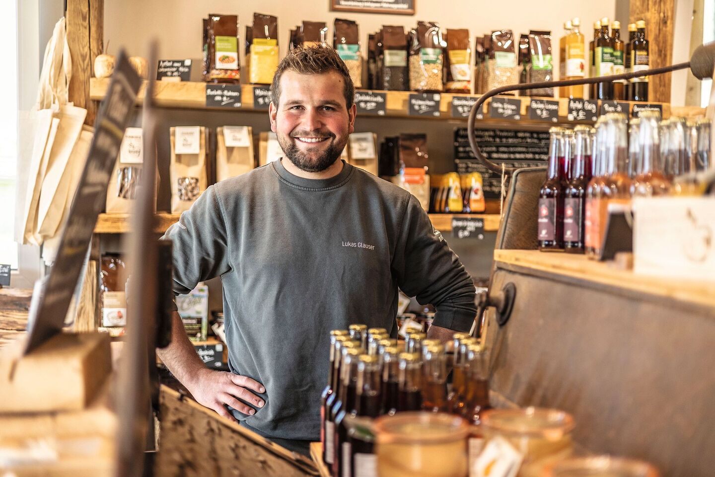 «Wenn wir am Stadtrand von Bern wären, hätten wir mehr Kundschaft», ist Lukas Glauser (27) überzeugt. Denn er setzt konsequent auf Bio-Produkte aus der Region, bis auf ganz wenige Ausnahmen. Dennoch ist er mit dem «Lädeli» zufrieden. Die Idee hatte er anfangs 2020, eröffnen konnte er den Hofladen im Herbst 2021.