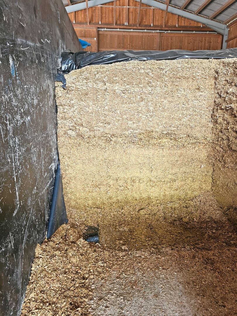 Der Mais wird jetzt schon in Fahrsilos konserviert. Die beiden Betriebsleiter sind sich bewusst, dass auch beim Fahrsilo ein Futterqualitätsrisiko besteht. Das grösste Risiko ist eine zu grosse Anschnittfläche, welche im Verhältnis zum Futterbedarf einen zu geringen Vorschub bei der Entnahme ergibt. [IMG 3]