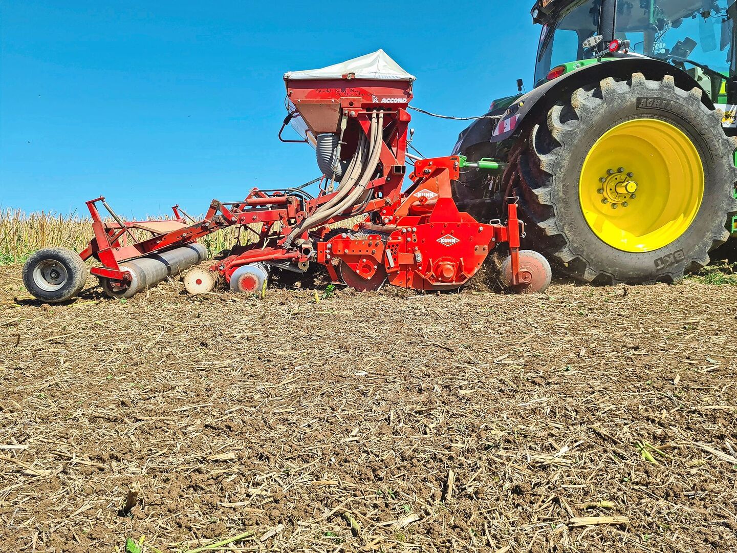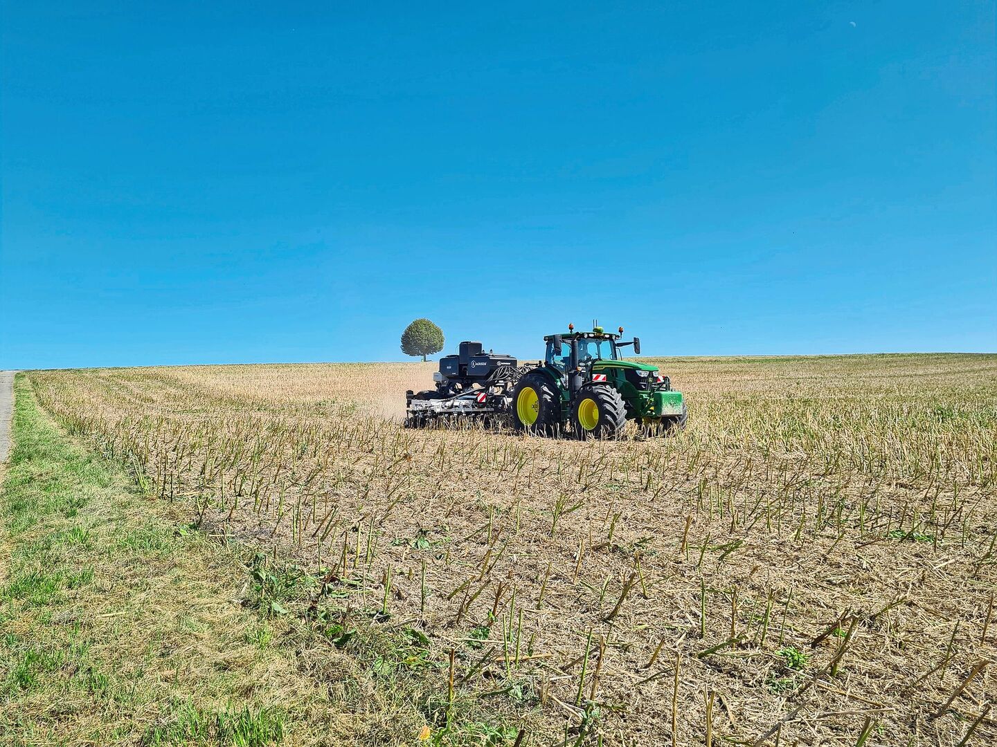 Die Parzelle wurde chemisch behandelt, um die Blacken zu stoppen. Dies stoppte auch den Ausfallraps. Die Saat erfolgte mit der Direktsaatmaschine.