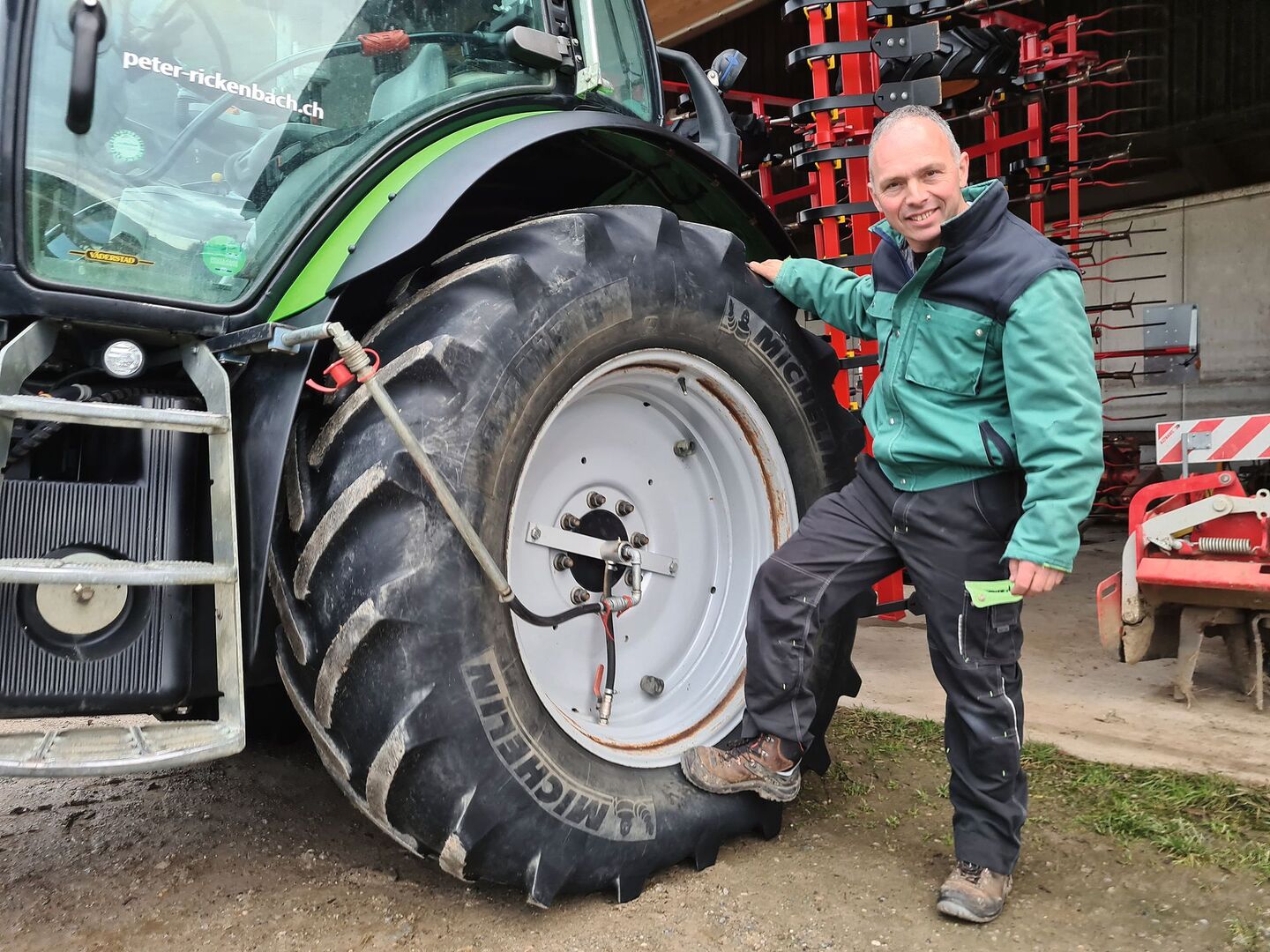 Da der passende Reifenfülldruck rasch eingestellt ist, kann Peter auf Kompromisse verzichten. «Früher lag der Reifenfülldruck das ganze Jahr bei etwa 1,4 bar. Das war auf der Strasse eher zu wenig und es kam zu erhöhtem Verschleiss und die Fahrstabilität war nicht ganz so gut wie mit höherem Druck. Auf dem Feld war der Druck zu hoch und es bildeten sich zum Teil Fahrspuren.»