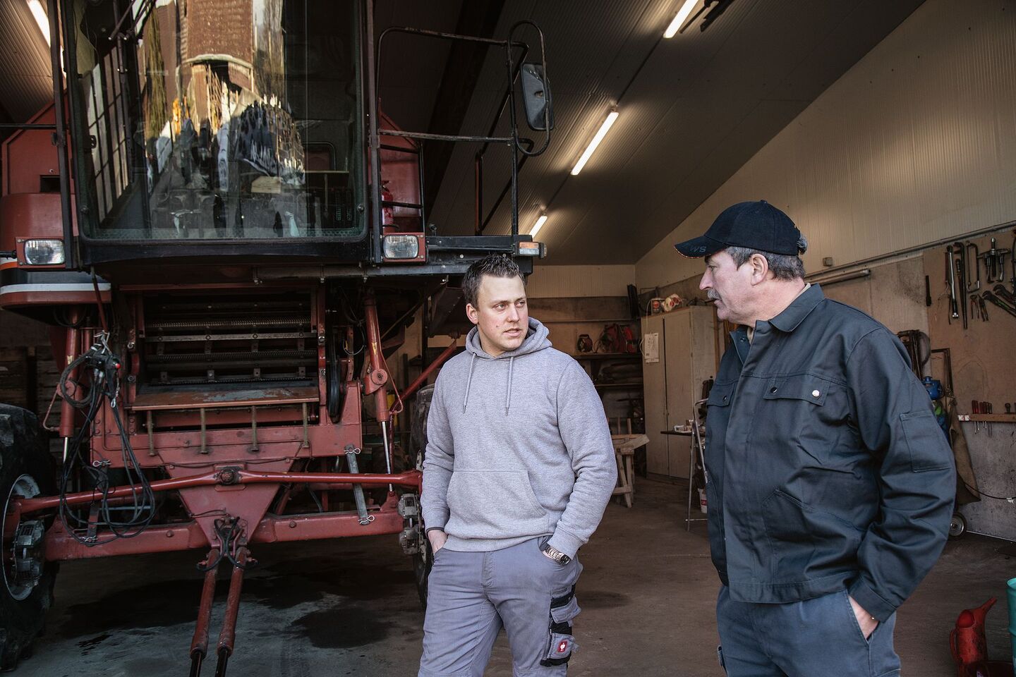 Vater und Sohn Herren fürchten nicht, dass ihr Mähdrescher überfordert sein könnte. Man müsse sich jedoch schon bewusst sein, dass das Leistungslimit des 4-Schüttlers nicht das gleiche ist wie bei heutigen Leistungsmaschinen von Lohnunternehmern.