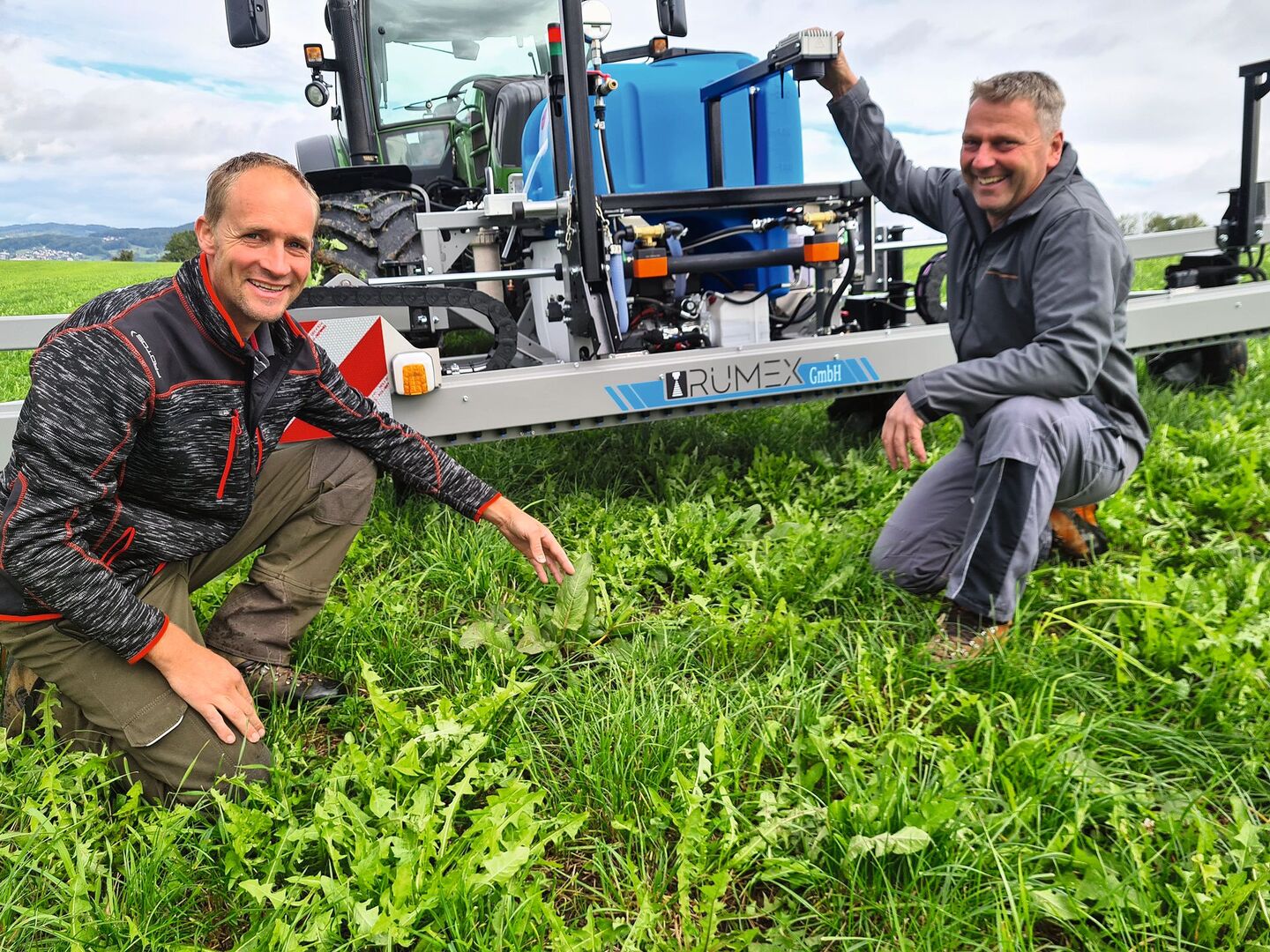 - Die Lohnunternehmer Andreas Egger und Thomas Bucher nutzen das System Rumex seit einigen Wochen.