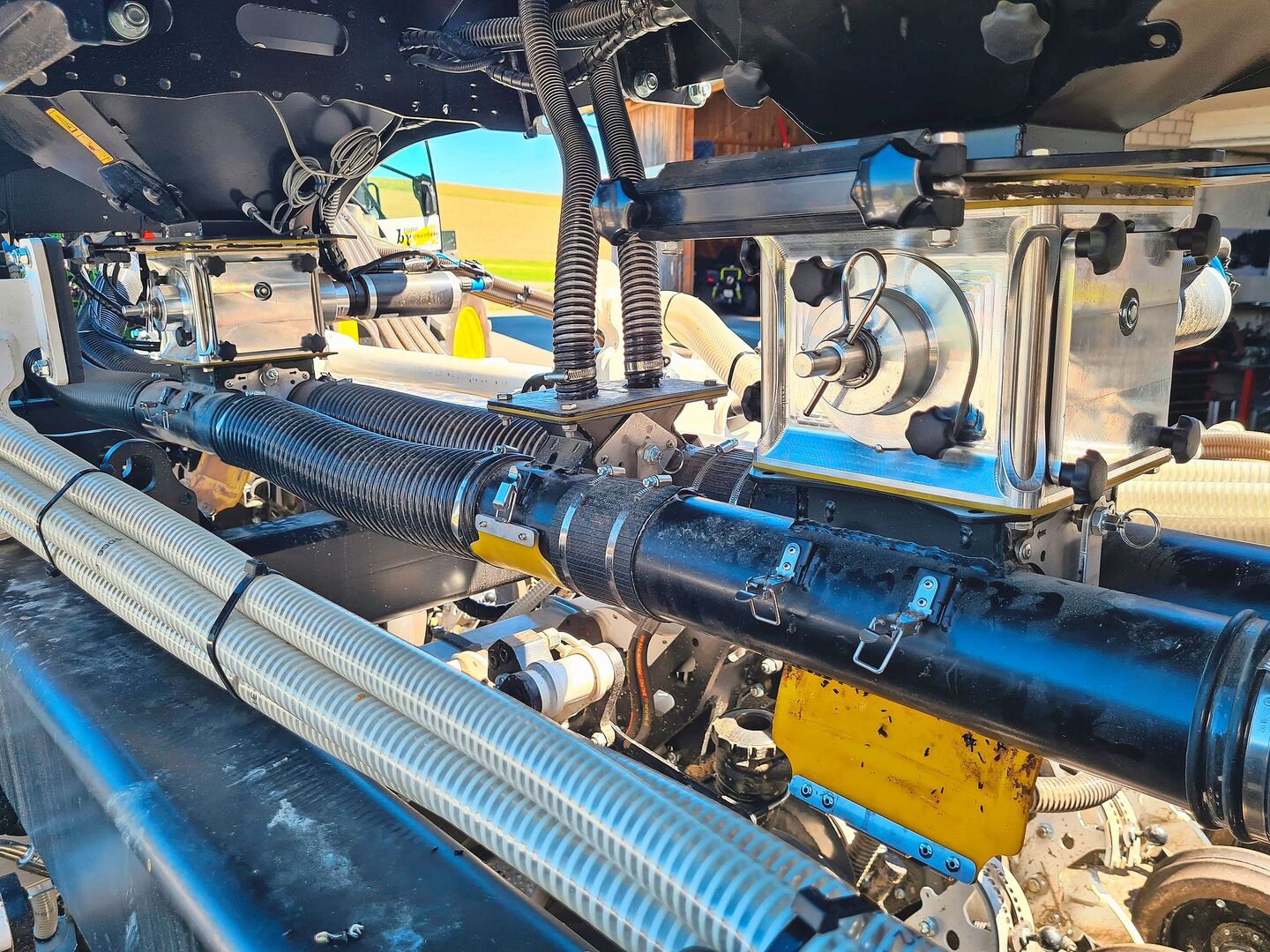 Grundsätzlich ist auch eine Einstellung möglich, welche die Saat auf alle Säkörper oder nur auf jene der vorderen oder der hinteren Reihe leitet. Möglich machen dies zwei Verteilköpfe: einer für die vordere und einer für die hintere Scharreihe. Ein vierter Tank hat eine Breitverteilung. Wegen der langen Leitungen wird das Saatgut mit viel Druck befördert. Damit das Korn deswegen nicht aus dem Säschlitz geblasen wird, münden die Saatgutförderleitungen in einen Entlüftungszyklon an jedem Säschar.