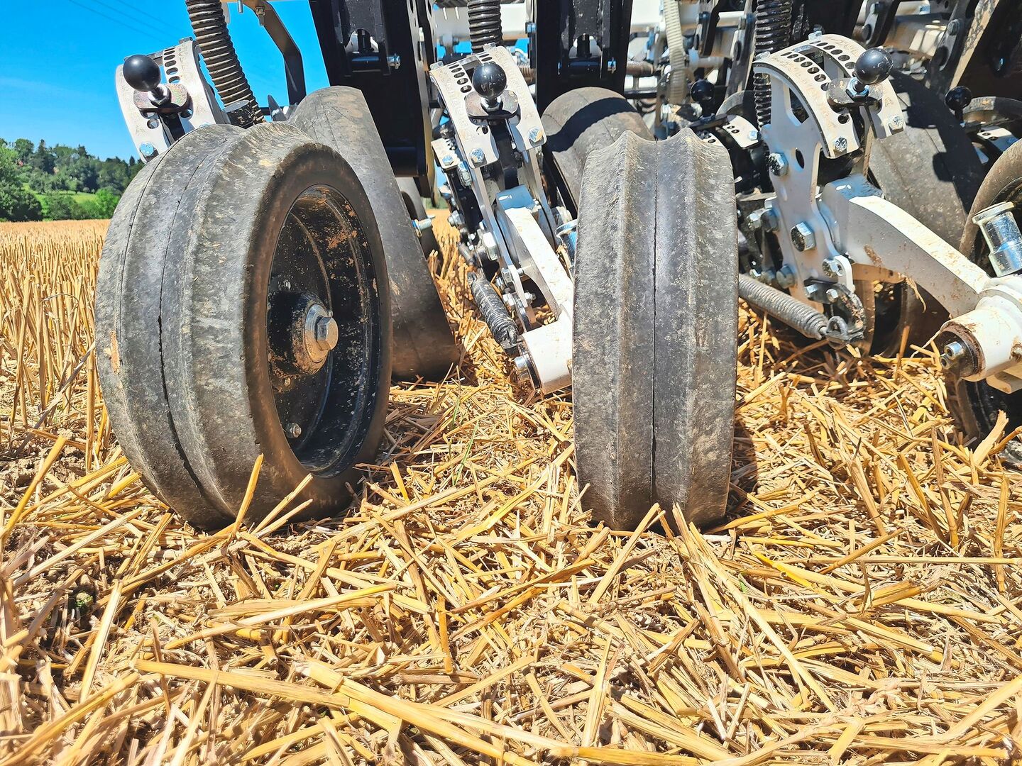 An der Agritechnica 2023 überzeugte ihn der angewinkelte Scheibenschar der Maschine. Die horizontale und vertikale Anstellung sorgen mit einem Unterschnitt für den Einzug der Scheibe in den Boden, welche den Säschlitz öffnet. «Das hat mich überzeugt. Deshalb habe ich mit einem guten Gewissen in die Maschine investiert.»