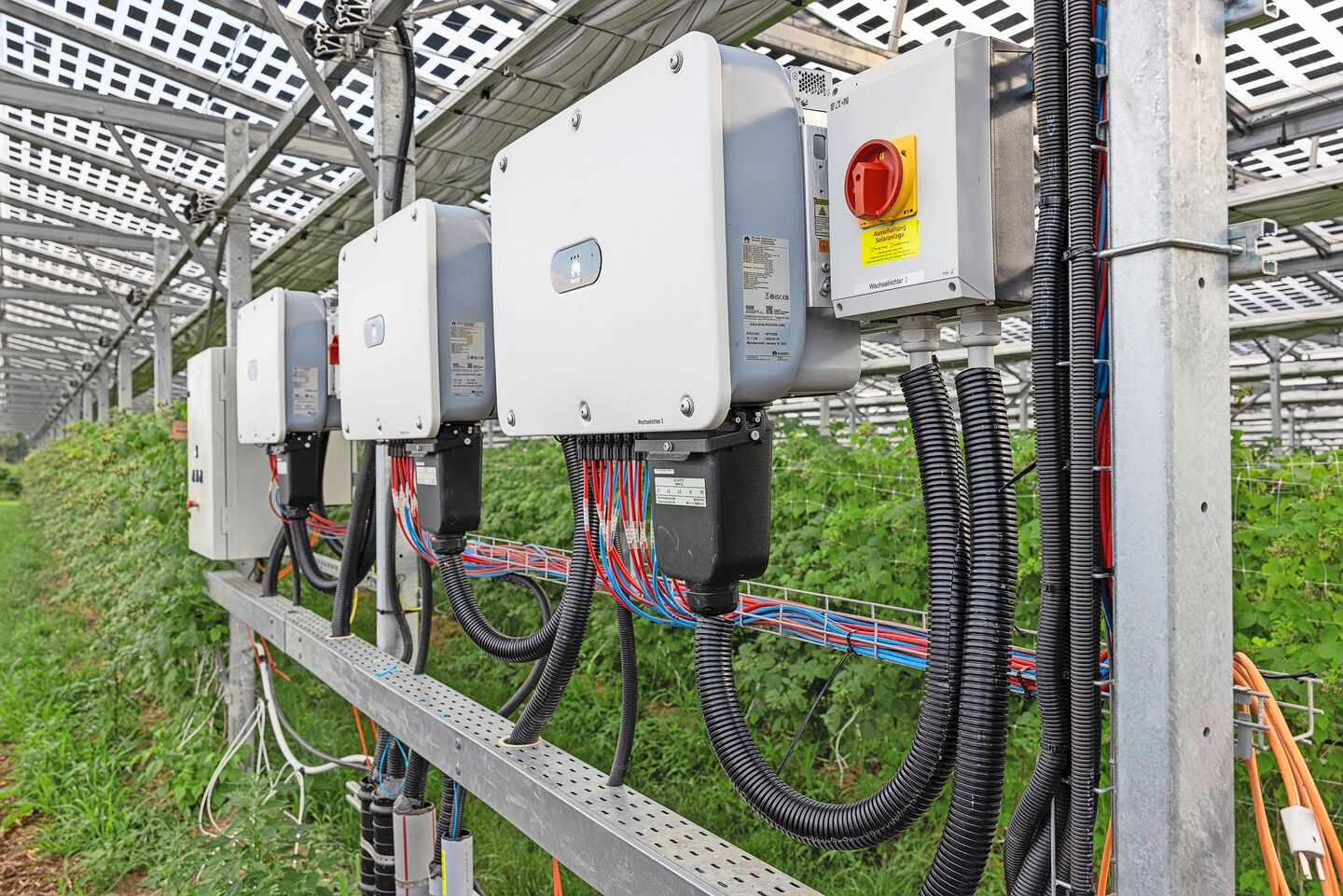 Noch immer ein Problem für Agri-PV-Anlagen ist der Netzanschluss. Schon bei Hofanlagen mit sehr grossen PV-Anlagen ist das bisweilen schwierig, weil die Leistung der Anlage die Anschlussleitung überlasten könnte.