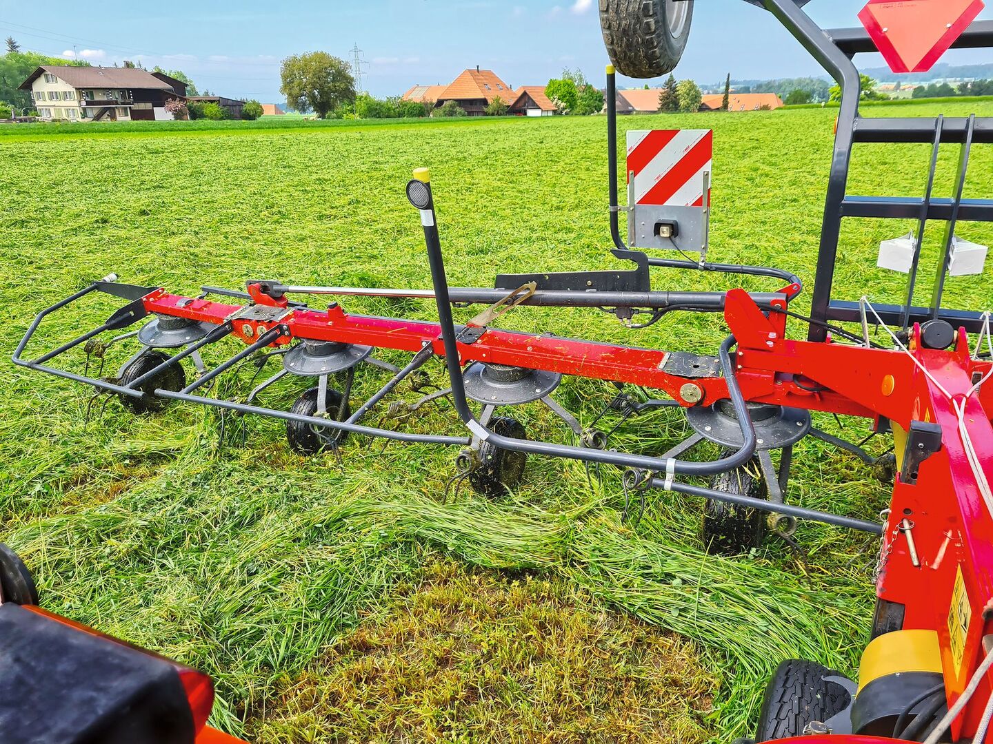«Die Futterqualität wird jedoch bereits beim Mähen beeinflusst. Die Schnitthöhe entscheidet über die Einstellung des Kreislers und des Schwaders. Mir ist es sehr wichtig, beim ersten Kreisler-Durchgang alles Futter sauber zu erfassen und ebenso, dass es gleichmässig abgelegt wird. Die Schnitthöhe stelle ich deshalb zwischen sieben und acht Zentimetern ein. Das erscheint ziemlich hoch, aber die Zinken erfassen alles Futter, ohne dabei am Boden zu kratzen.»