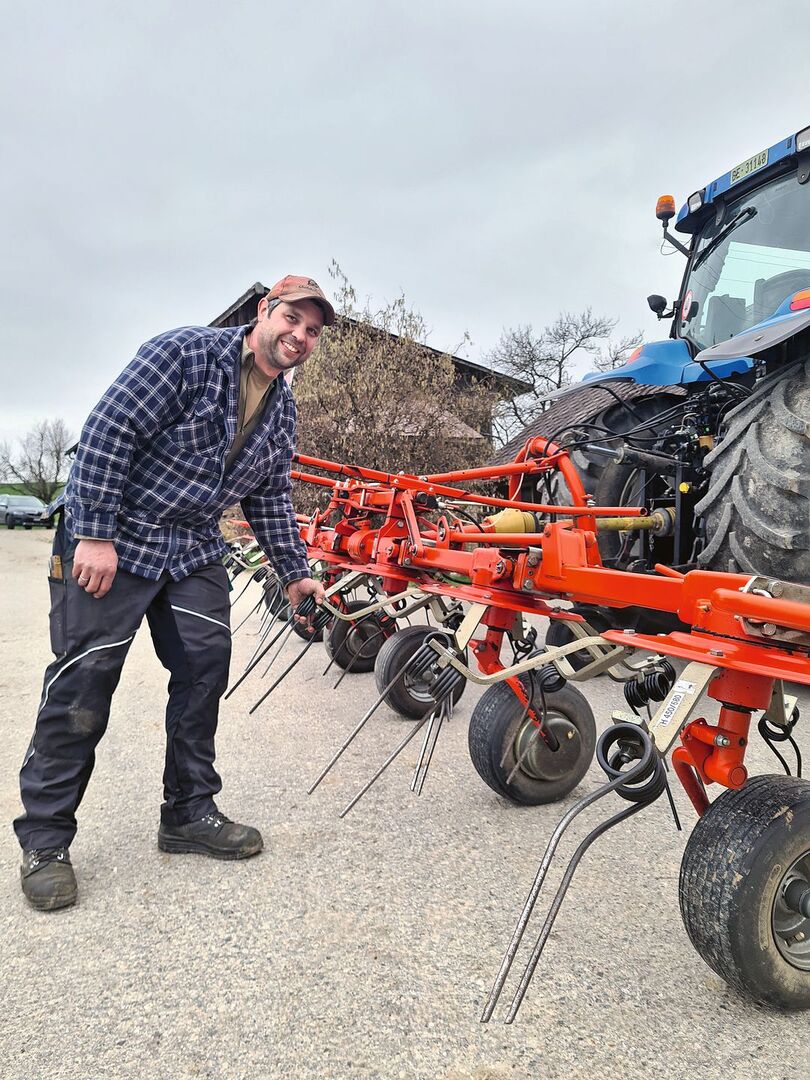 Philipp Jufer aus dem bernischen Melchnau kontrolliert vor der Saison die Futterbaumaschinen. Als gelernter Landmaschinenmechaniker fällt es ihm nicht schwer, den Maschinenzustand zu erkennen und Verschleissteile zu wechseln oder Reparaturen auszuführen.