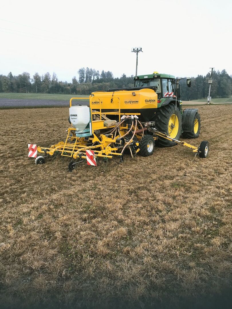 Zudem nennt Philipp Böhlen noch einen anderen Grund, weshalb ein bewachsener Boden im Sommer wichtig ist. Er hat festgestellt, dass ein nacktes Stoppelfeld im Hochsommer Ober-flächentemperaturen gegen 60 Grad oder mehr erreichen kann, je nach Bodentyp. «Als mir das bewusst wurde, war mir klar, dass man die Temperaturen durch Beschattung mit Bewuchs reduzieren muss.» Bei der Aussaat der Gründüngung überlässt Philipp Böhlen nichts dem Zufall und bringt die Gründüngung mit dem Streifensaatverfahren der Claydon Saatmaschine, exakt wie die Getreidekulturen, aus.