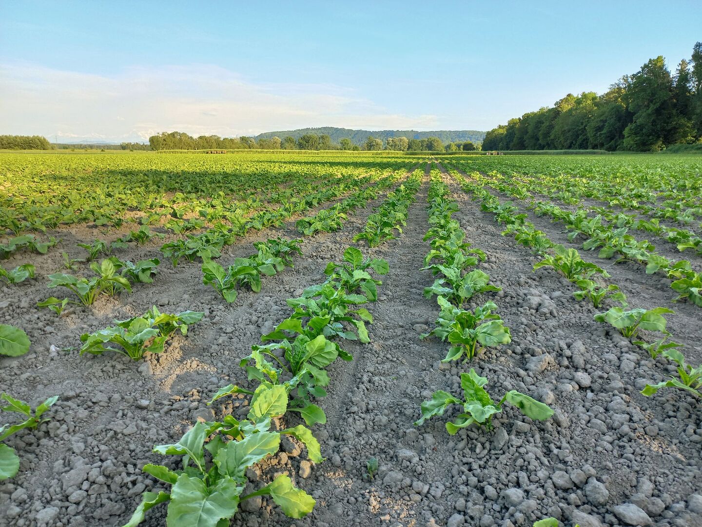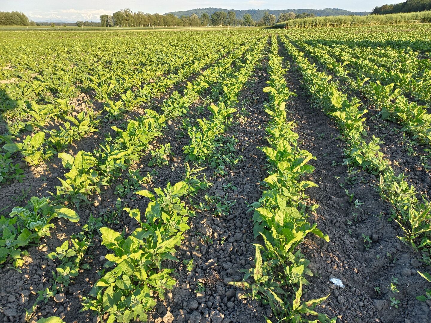 Zwei autonome Hackroboter der neusten Generation im Praxiseinsatz. Auf 10 ha Bio-Zuckerrüben am Tannenhof in Gampelen BE mussten sich die Roboter beim Säen und Hacken beweisen.