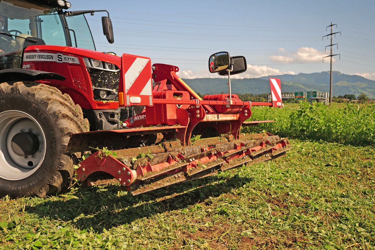 An einer Maschinenvorführung wurden verschiedene Geräte von der Messerwalze, welche Gründüngungen zerkleinert, bis zum Präzisions-Grubber vorgestellt. Die Zerkleinerung der Ernterückstände und das flache Einarbeiten beschleunigt die Verrottung.