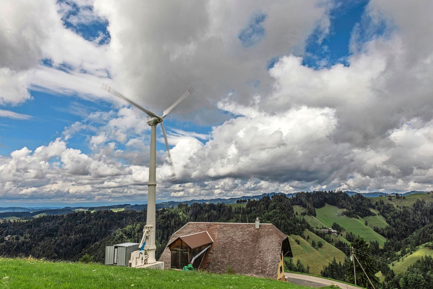 «Wir haben lange überlegt, wie wir den eigenen Strom noch stärker für unseren Betrieb nutzen könnten – auch in Randzeiten und wenn die Sonne nicht da ist. Zuerst dachten wir an einen Batteriespeicher, um hier einen Ausgleich zu schaffen. Letztlich haben wir uns jedoch für eine Windturbine neben unserem Bergbetrieb entschieden», so Bernhard Riedweg.