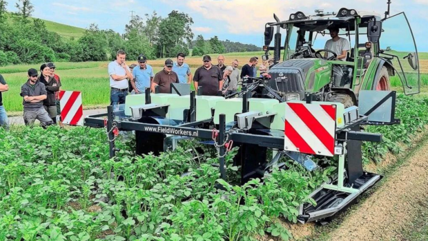 Robin Kampert erwidert, dass die Maschine dafür mit einem Häufelgerät kombiniert werden kann. Somit kann doppelter Pflanzenschutz in einem Arbeitsgang erledigt werden.