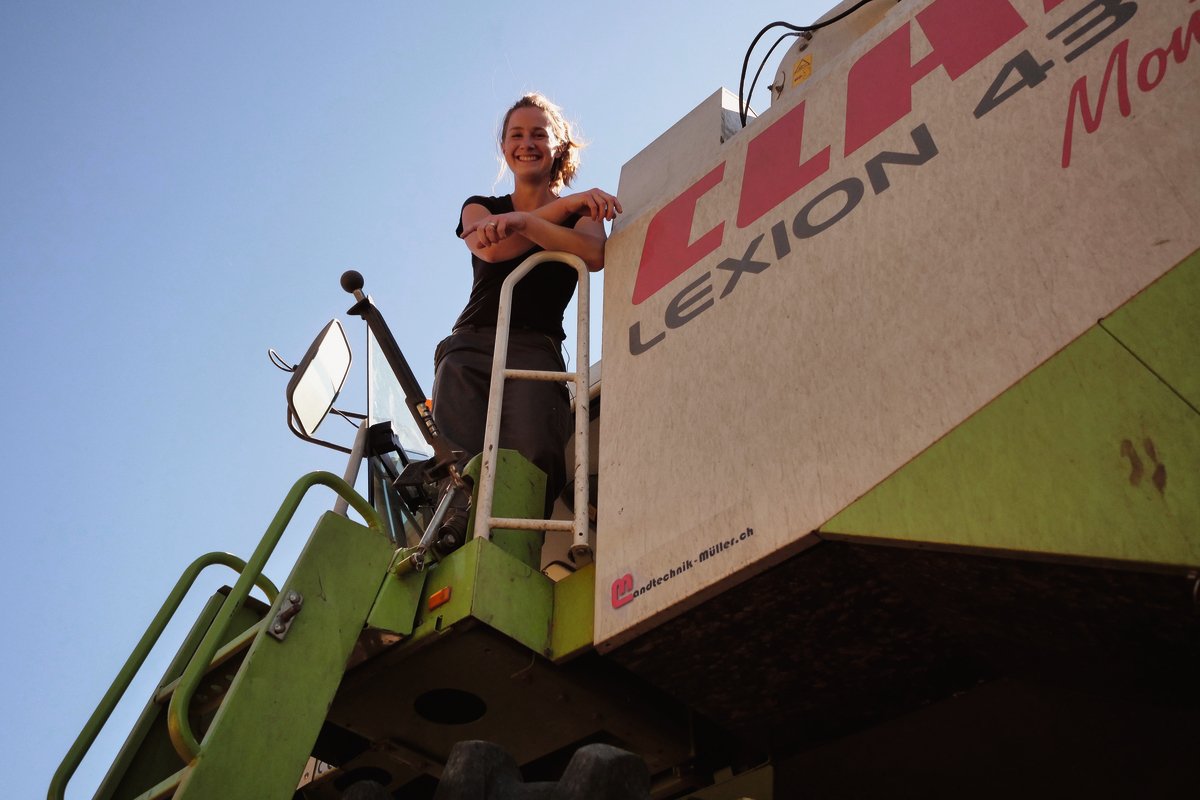 Corinne Müller ist wohl die einzige Frau in der Schweiz, die Mähdrescher fährt. Wieso das so ist, versteht sie nicht: «Wenn man etwas mit Leidenschaft macht und sich dafür interessiert, spielt das Geschlecht keine Rolle. Es gibt ja auch Busfahrerinnen – ich sehe keinen Grund, wieso eine Frau kein grosses Fahrzeug bedienen soll.»