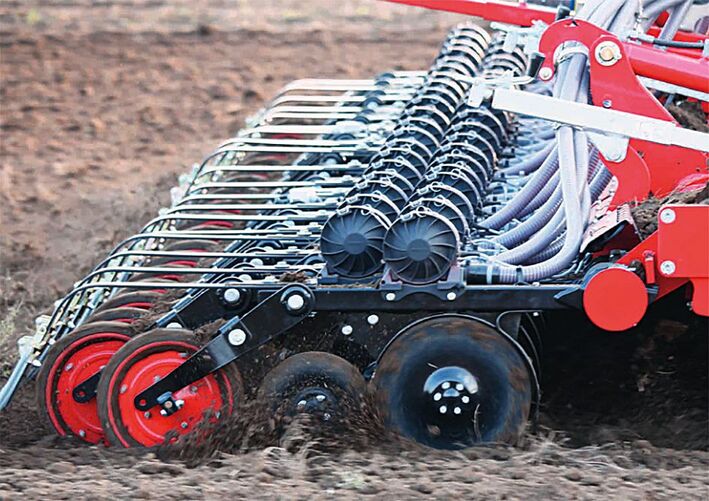 Sternräumer sorgen dafür, dass organische Rückstände am Saatband beseitigt werden und der Säkörper störungsfrei durch den Boden gleitet. Die Maschine kann auch für Direktsaat eingesetzt werden. Jeder Säkörper lässt sich mit einem hydraulischen Druck von bis zu 350 kg belasten. Dabei wird das volle Maschinengewicht übertragen.