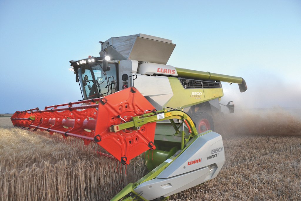 Das Flaggschiff Lexion 8900 hat ein Korntank-Volumen von 18 000 Litern. Diese Last trägt er aber nur mit dem Terra Trac-Raupenfahrwerk. Die Entlade-Leistung beträgt 180 Liter pro Sekunde. Das braucht viel Kraft, der Motor leistet dafür 790 PS.
