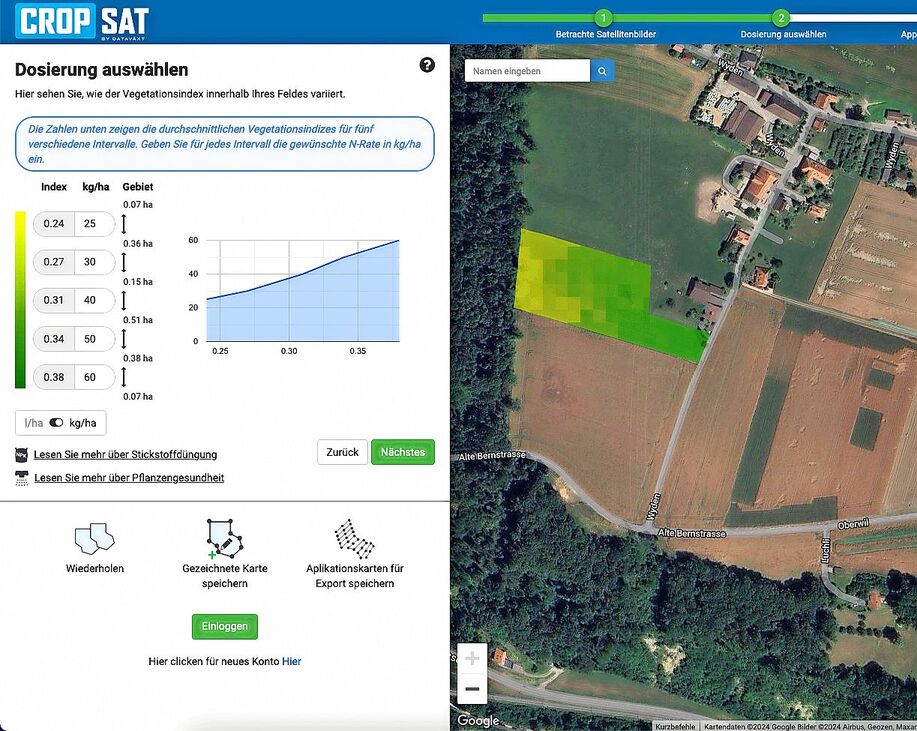 Ein solcher Software-Anbieter ist beispielsweise CropSat. Dort kann jedermann kostenlos eine Ausbringkarte erstellen. [IMG 2]