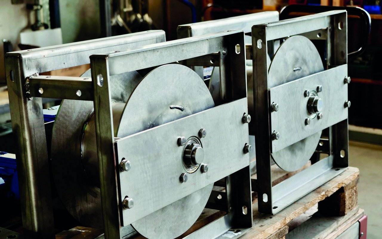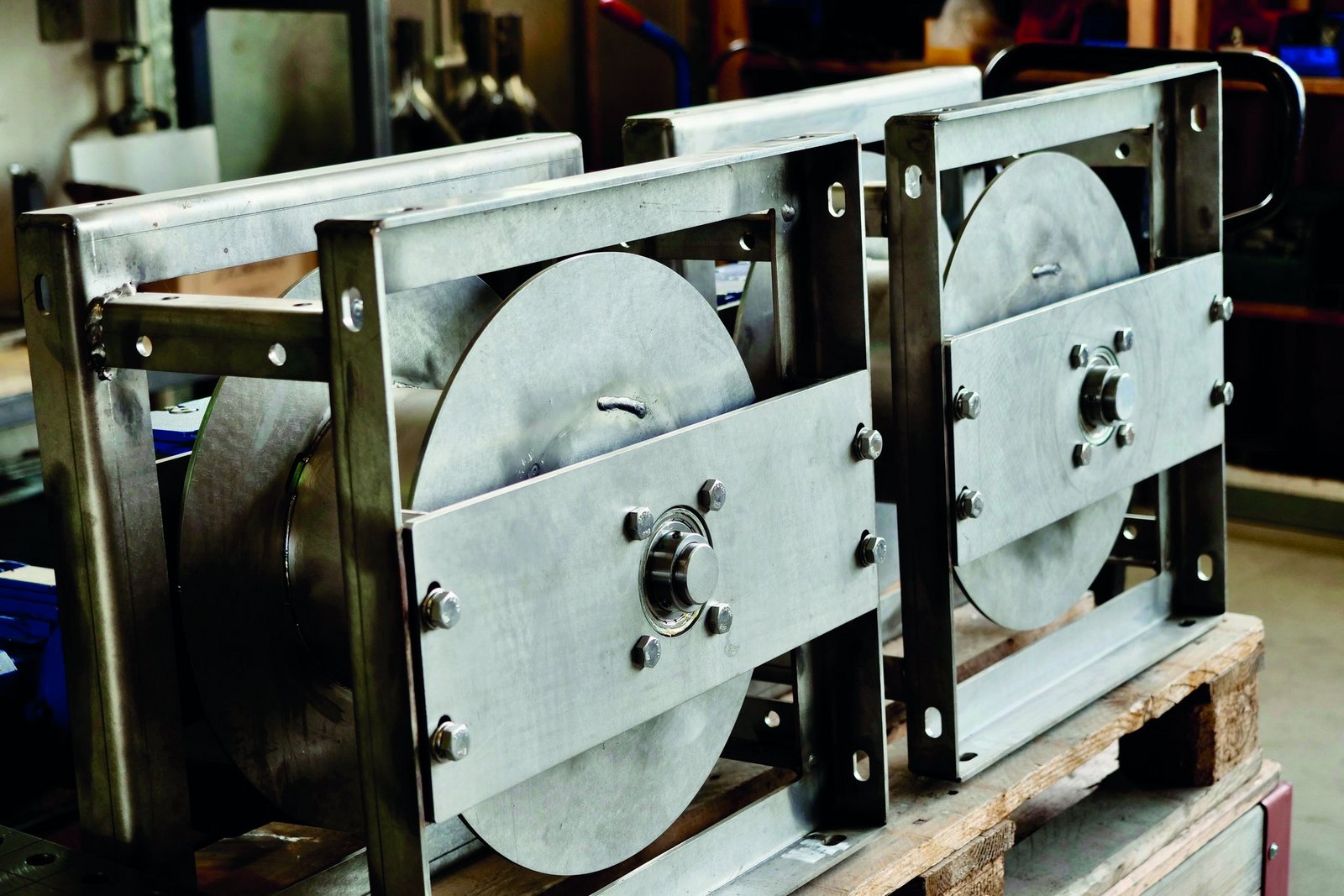 Das am häufigsten verkaufte Produkt ist der Seilzugschieber. Alle Bauteile einer solchen Entmistungsanlage werden in der eigenen Produktionshalle zusammengeschweisst und zum Schieber verbaut. Das umfasst nebst dem Schieber die Windentrommeln und die Umlenkrollen. Auch der Bedienkasten für die Anlagensteuerung baut das Unternehmen in Zusammenarbeit mit Partnerfirmen.
