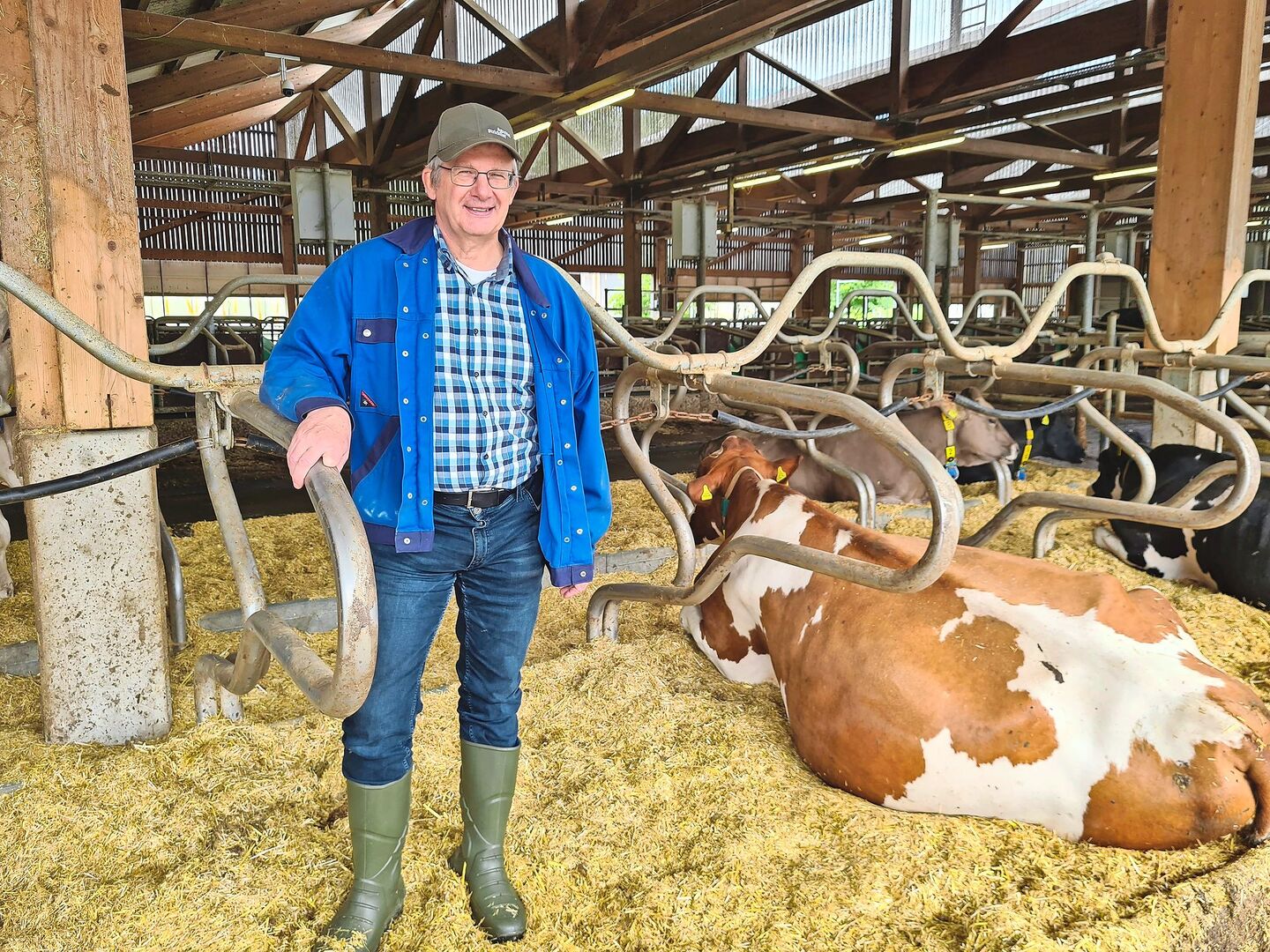 Matthias Schick testet im Stall am Strickhof viele Systeme. Dabei geht es vor allem um Bodenelemente und wie man diese sauber hält. Auch bei Verschleissteilen ist Schick aktiv an Lösungen beteiligt und er erforscht, wie die Bodenoberfläche mit fest installierten Wasserdüsen befeuchtet werden kann.