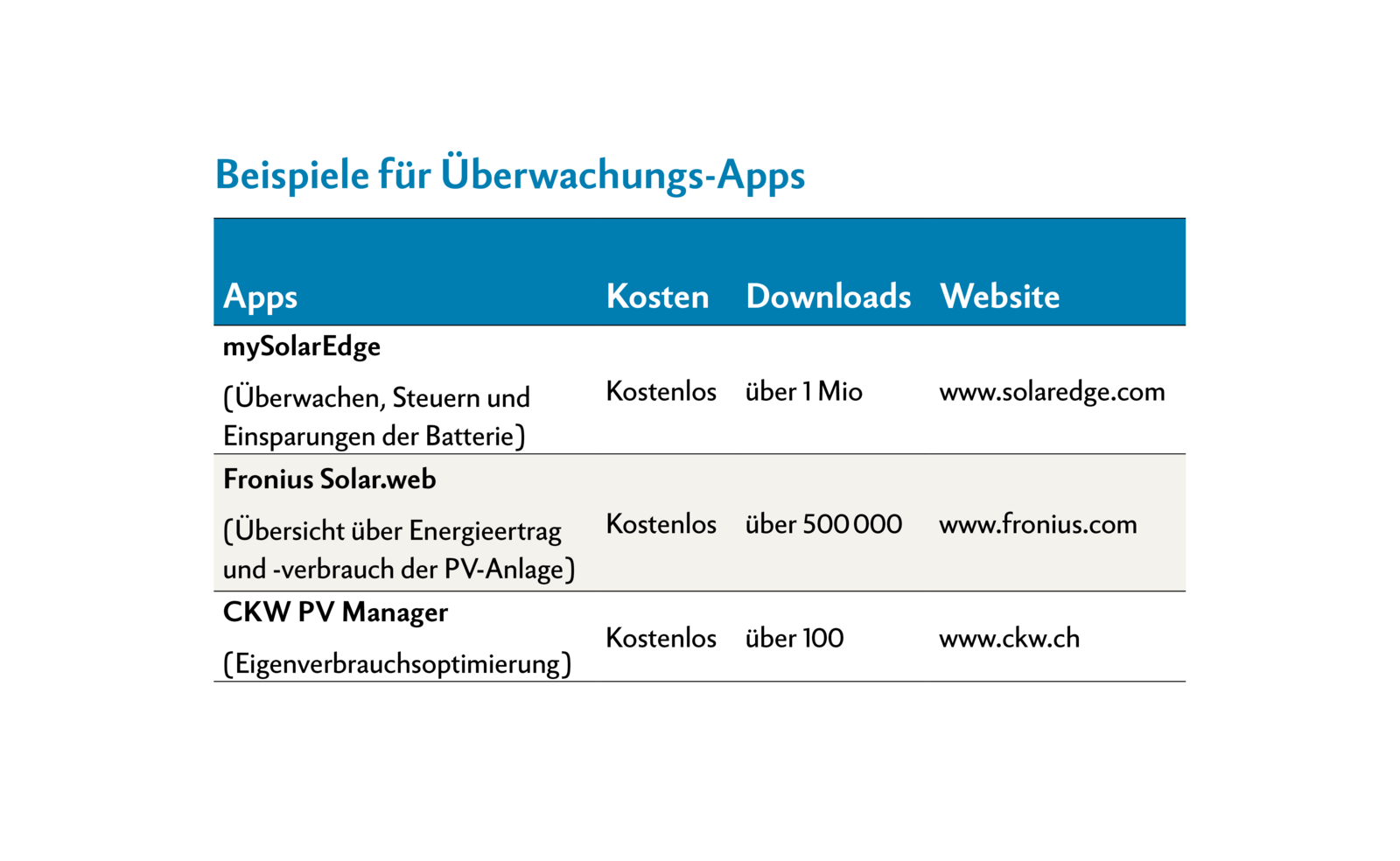 Auf den gängigen Download-Plattformen finden sich viele Apps, mit denen die eigene Solaranlage gesteuert und überwacht werden kann. Die drei Beispiele sind kostenlos erhältlich.