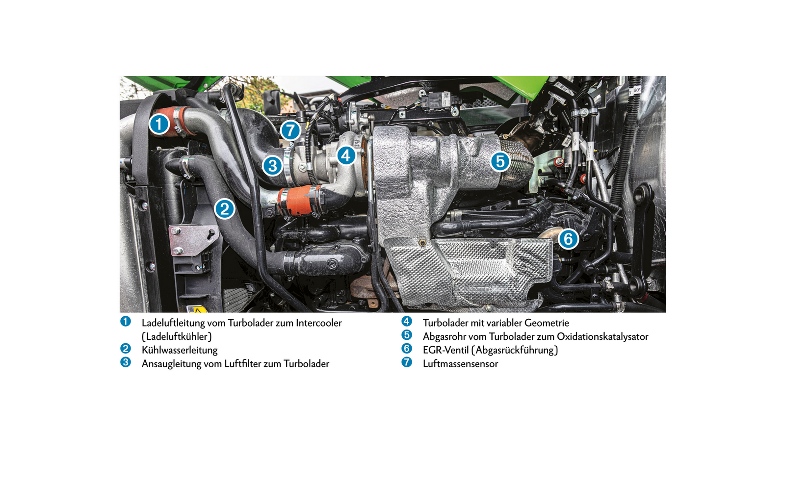 Der Ladeluftkühler kühlt diese Luft ab, womit mehr Luftvolumen in den Brennraum gebracht werden kann und dadurch die Effizienz der Verbrennung erhöht und die Emissionen reduziert werden. «Der Turbolader sorgt für eine optimale Luftzufuhr in den Verbrennungsraum. Mit mehr Luft ist eine heissere Verbrennung mit höherer Kraftstoffeffizienz möglich. Das reduziert den Russ und verbessert die Kraftstoffeffizienz – jedoch steigen, wie erwähnt, die Stickoxide.»