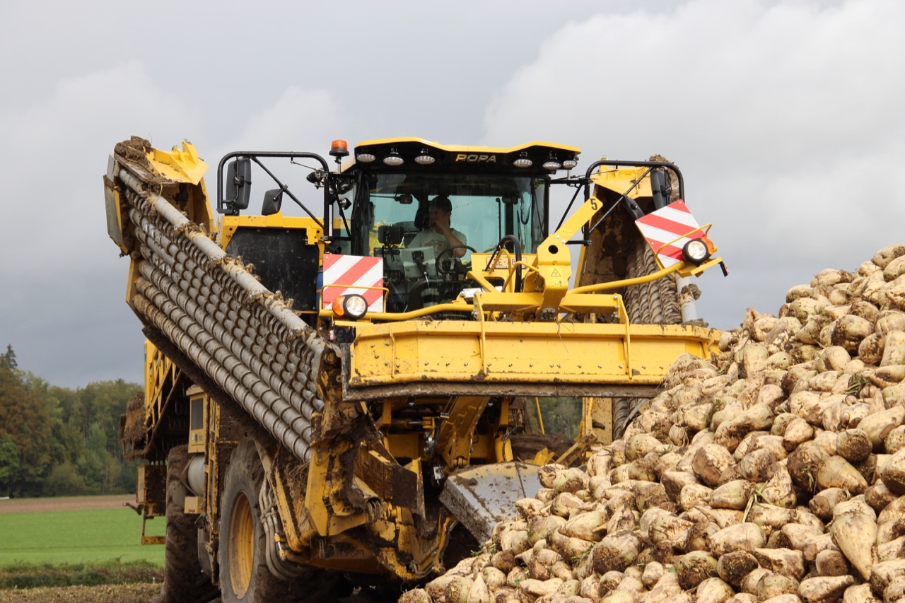 «Ich habe einen Kollegen aus meiner Lehrzeit, der für den Rübenring ebenfalls als Fahrer gearbeitet hat», erinnert sich Marco Bühler, während die Maus weiterhin Tonne um Tonne Rüben in die Kipper donnern lässt. Weil er schon immer von Landtechnik im Allgemeinen und grossen Maschinen im Besonderen fasziniert war, zog es ihn ebenfalls zum Rübenring.