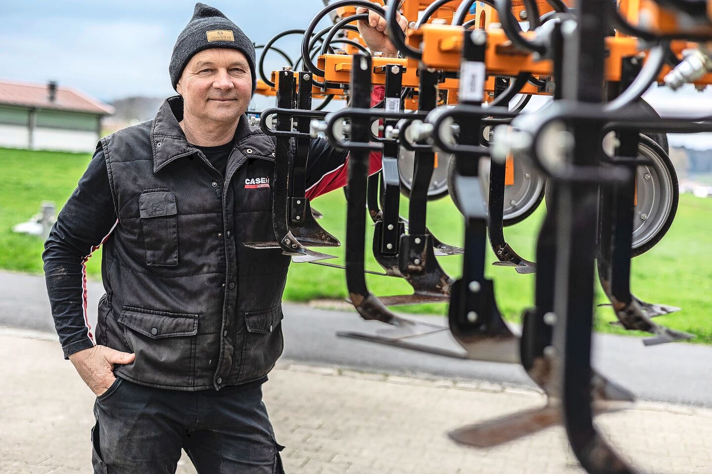 Oft sind es Details, die eine Maschine für den einen Landwirtgeeignet und für den anderen weniger geeignet machen. So besitzt Perler eine Hacke, bei welcher der Reihenabstand zwar flexibel einstellbar ist, aber die einzelnen Einheiten am Rahmen nicht einrasten. Daher muss er immer wieder nachmessen, um den richtigen Abstand einzustellen. Das kostet viel Zeit und führt dazu, dass niemand die Maschine gerne umstellen möchte. Als er die Maschine damals gekauft hat, war dies jedoch zweitrangig.