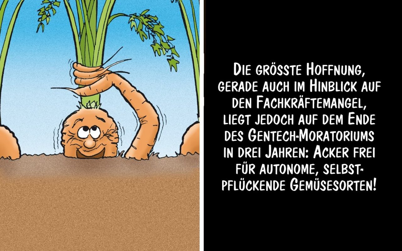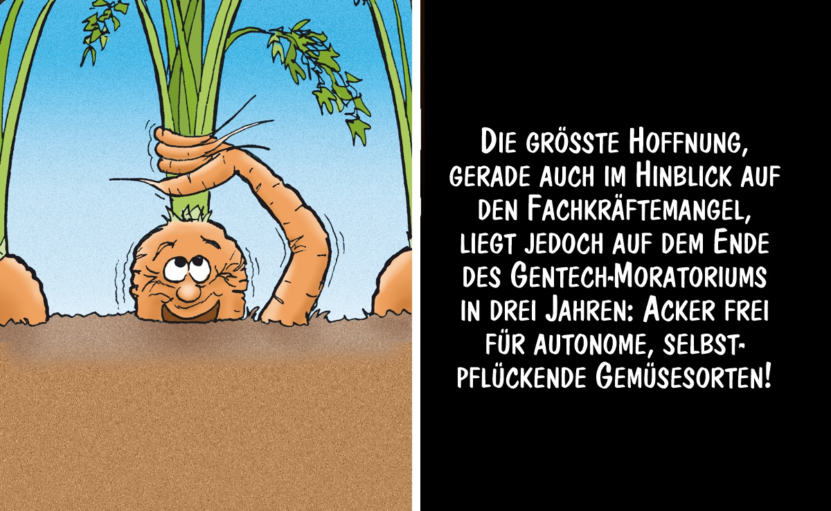Cartoon von Marco Ratschiller/Karma: Ideen zur Bodenschonung