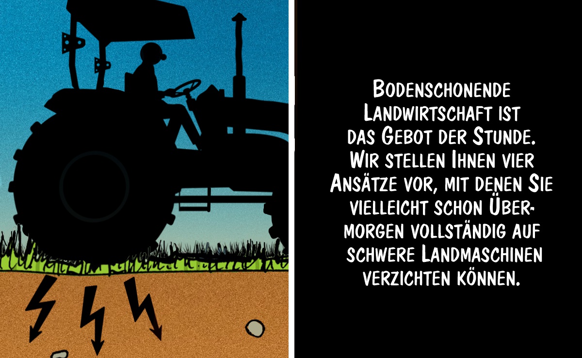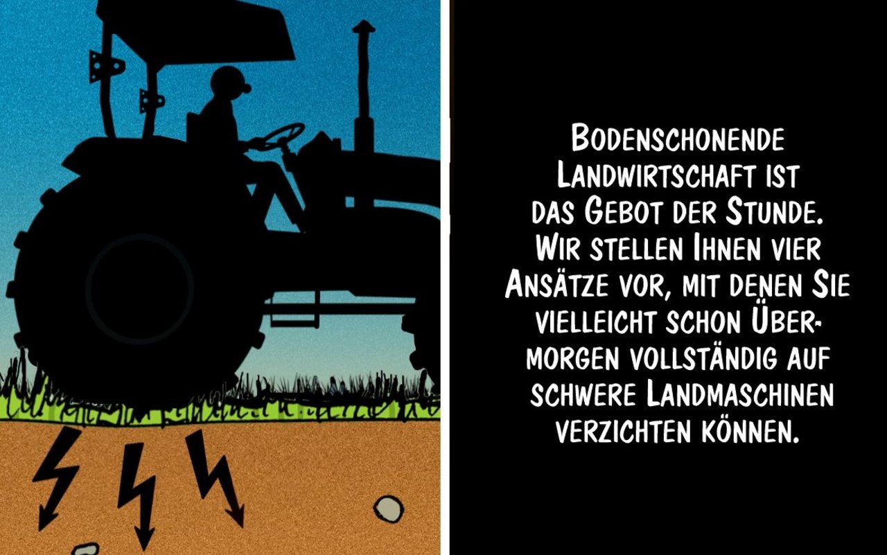 Bodenschonende Landwirtschaft ist das Gebot der Stunde. Marco Ratschiller/Karma zeigt Ansätze, die schwere Landmaschinen vielleicht bald schon verschwinden lassen.