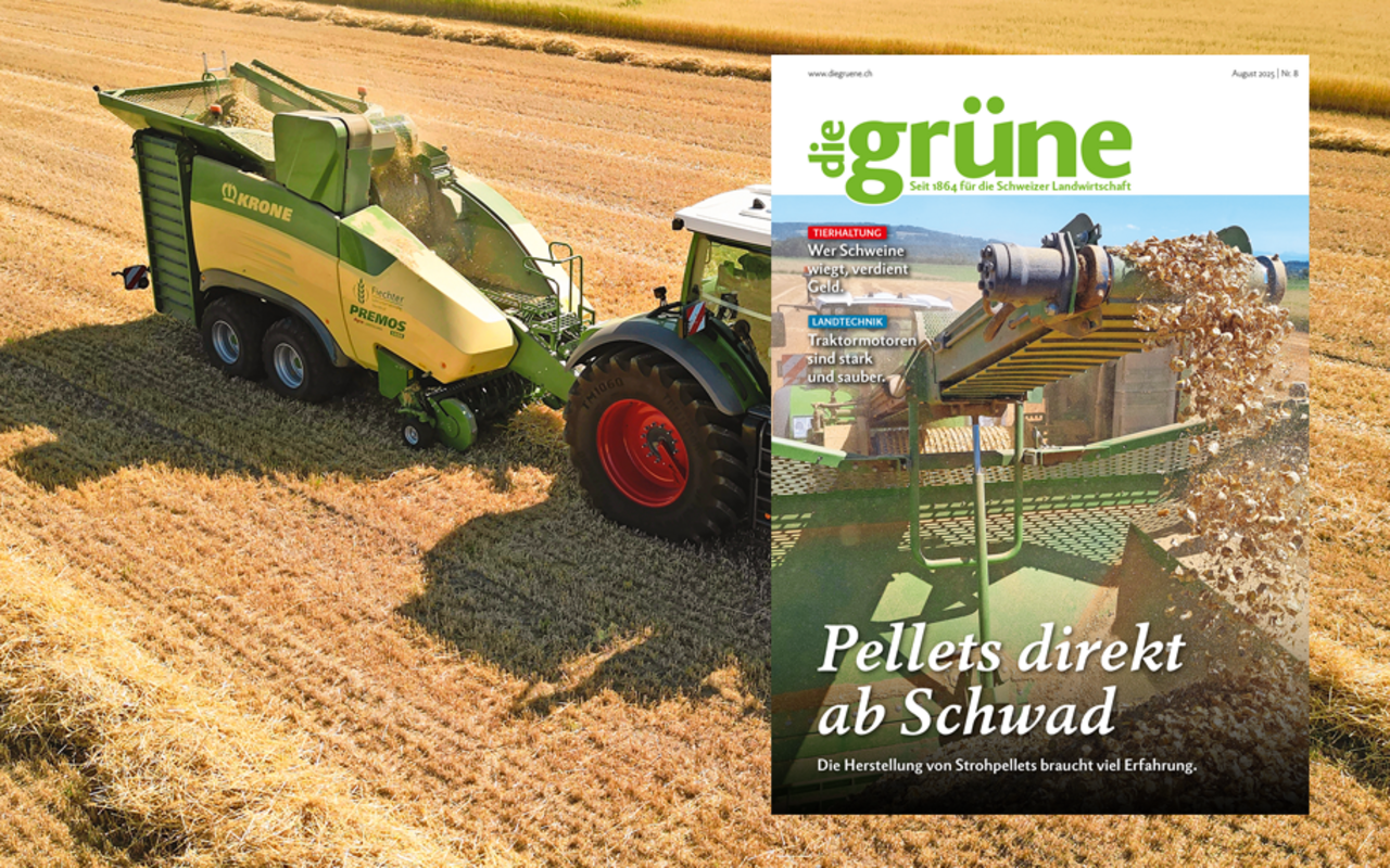 In der Jahresserie «Weitblick» porträtiert Geraldine Zutter das Lohnunternehmen Fiechter aus Kappelen BE. Es ist das erste und bisher einzige Unternehmen in der Schweiz, das Strohpellets direkt ab Feld herstellen kann. Warum die Idee dazu im Hühnerstall entstand und wieso der Weg zum optimalen Strohpellet viel Herzblut erforderte.