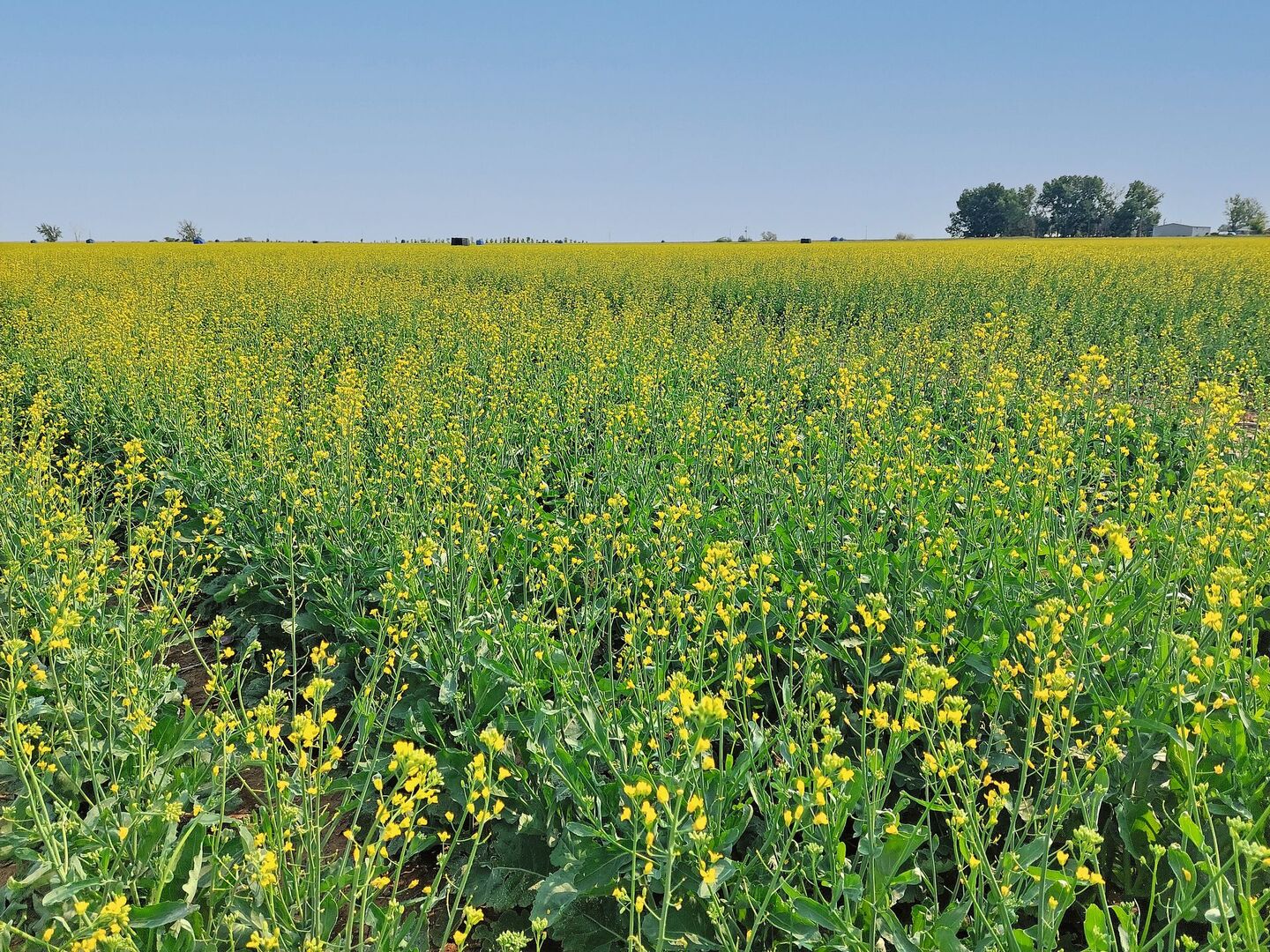 Raps wurde ursprünglich in Kanada entdeckt. Deshalb heisst er in Englisch «Canola» von «Canada» und «Oil». Der Raps blüht Ende Juni, weil er erst im Mai gesät wurde. Geerntet wird im September.