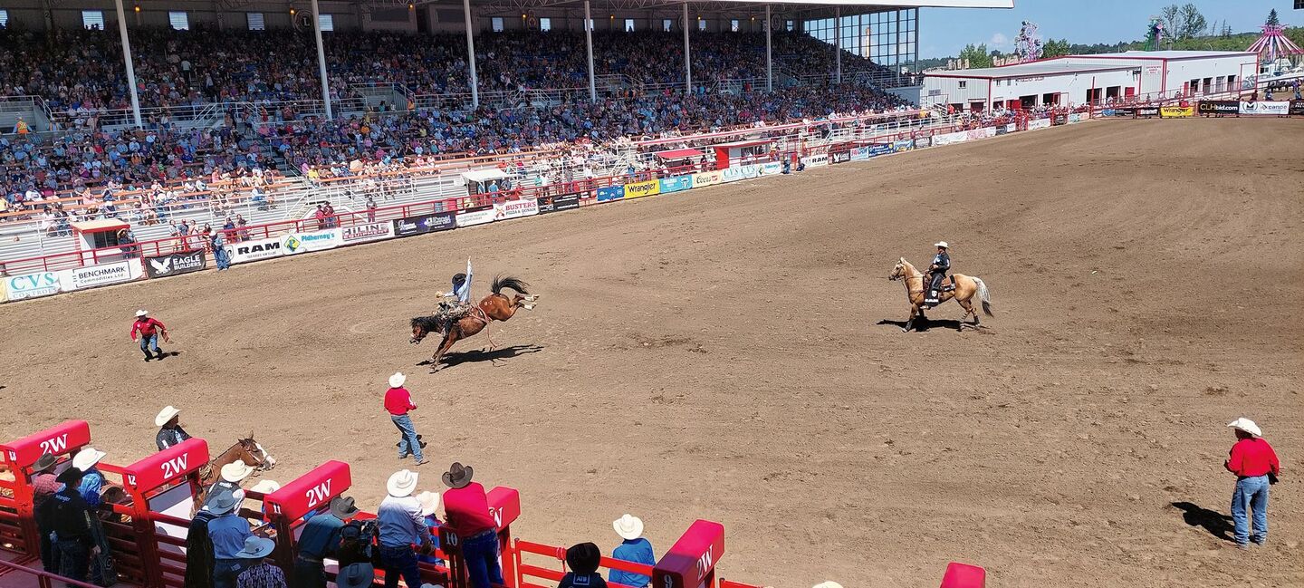 Rodeo gehört zur kanadischen Tradition. Es gibt die verschiedensten Disziplinen, von Pferderodeo über Bullriding zu Steer-Wrestling. Da muss man wirklich sattelfest sein.