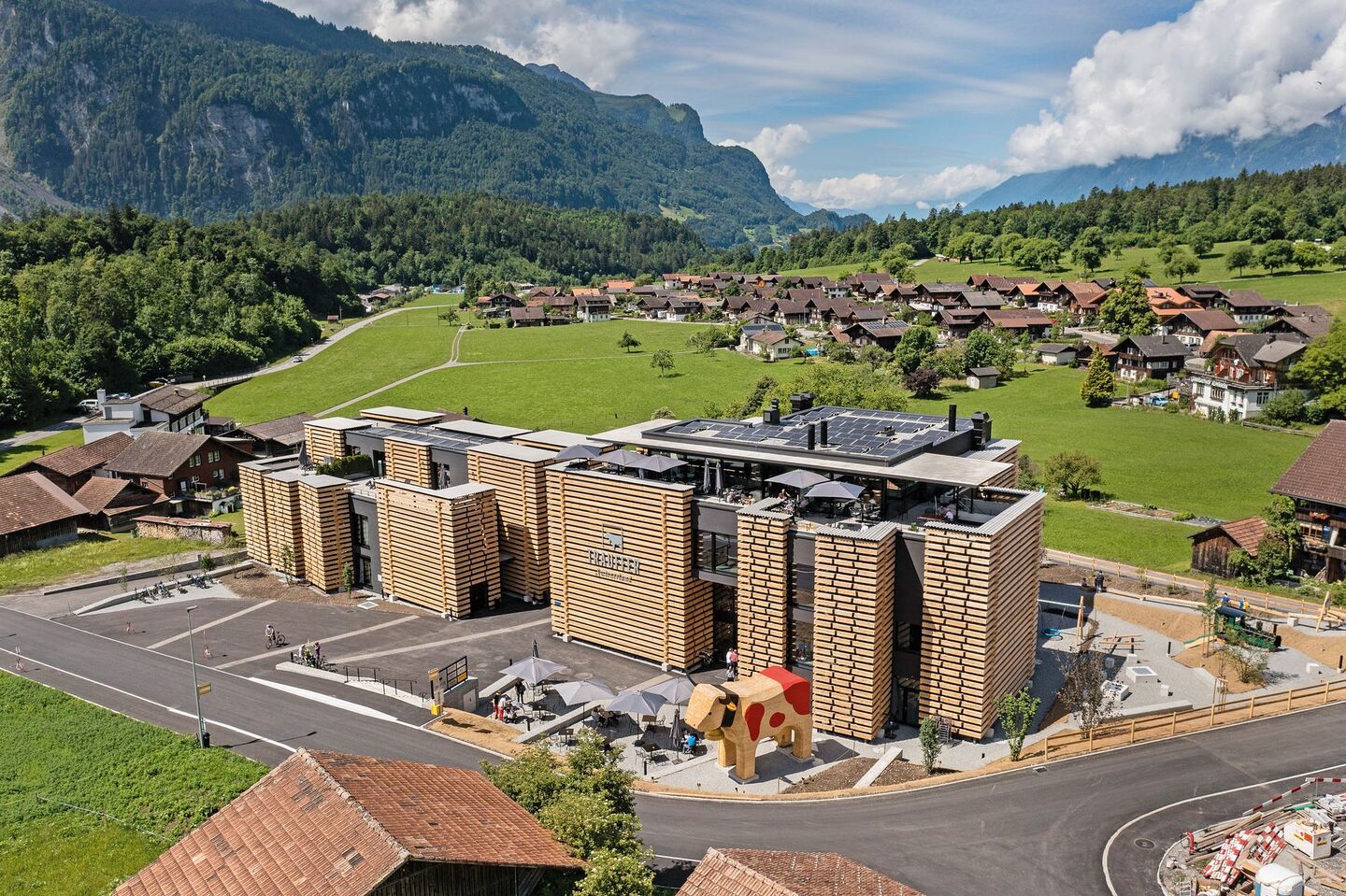 Am Holzkuhplatz 1 steht das hölzige 31-Zimmer-«Bretterhotel» mit 102 Betten. Dazu gehören das Bistro «Rosa’s», das Restaurant «Alfred’s», die interaktive «Erlebniswelt», der Dorfladen Hofstetten und sogar die lokale Poststelle.