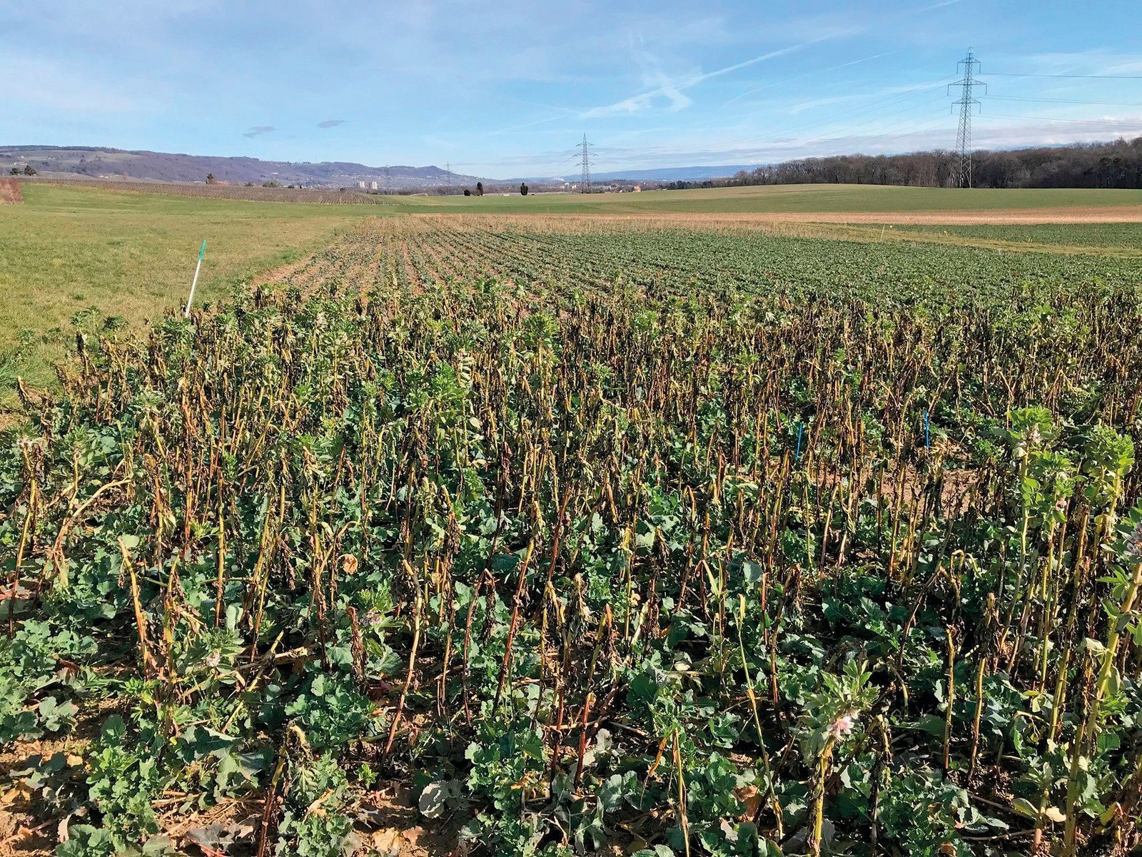 Im Rahmen der zwischen 2014 und 2018 durchgeführten Versuche mit Untersaat konnten Frass-Schäden durch adulte Erdflöhe reduziert werden. 2020 zeigte ein Versuch mit der Ackerbohnen als Begleitpflanze vielversprechende Ergebnisse. Die frostharte Leguminose reduzierte den Bestand der Rapspflanzen, machte sie jedoch robuster. Die Rapskultur mit Untersaat erlitt weniger Schäden durch den Rapsstängelrüssler, möglicherweise aufgrund der visuellen Verwirrung durch die Stängel der Ackerbohnen im Februar/März. Zudem war auch die Zahl der Rapsglanzkäfer pro Pflanze geringer. Schliesslich konnte bei der Raps-Untersaat mit Ackerbohnen ein höherer Ertrag erzielt werden.