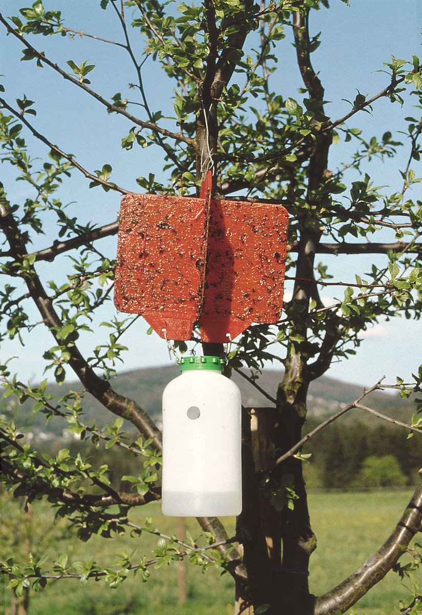 Pro Hektare sind mindestens acht Fallen aufzuhängen. Die Fallen werden am besten angrenzend, dem Zaun entlang oder ausserhalb der Obstanlage montiert, um die Käfer nicht unnötigerweise in die Anlage zu locken. Stark geschwächte Bäume sind aber leider oft attraktiver als die Fallen.