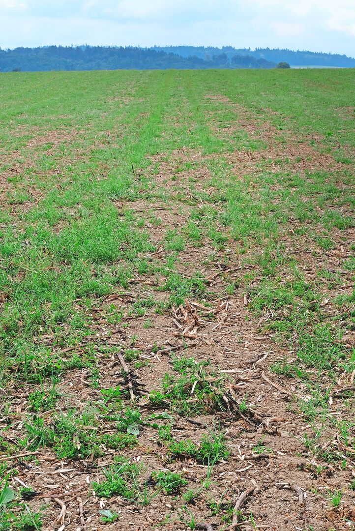 Die abgeschlegelten Erntereste schützen zwar den Boden, reduzieren jedoch das Lichtangebot für die Untersaat, sodass besonders lichtbedürftiger Klee in seiner Entwicklung gehemmt wird.