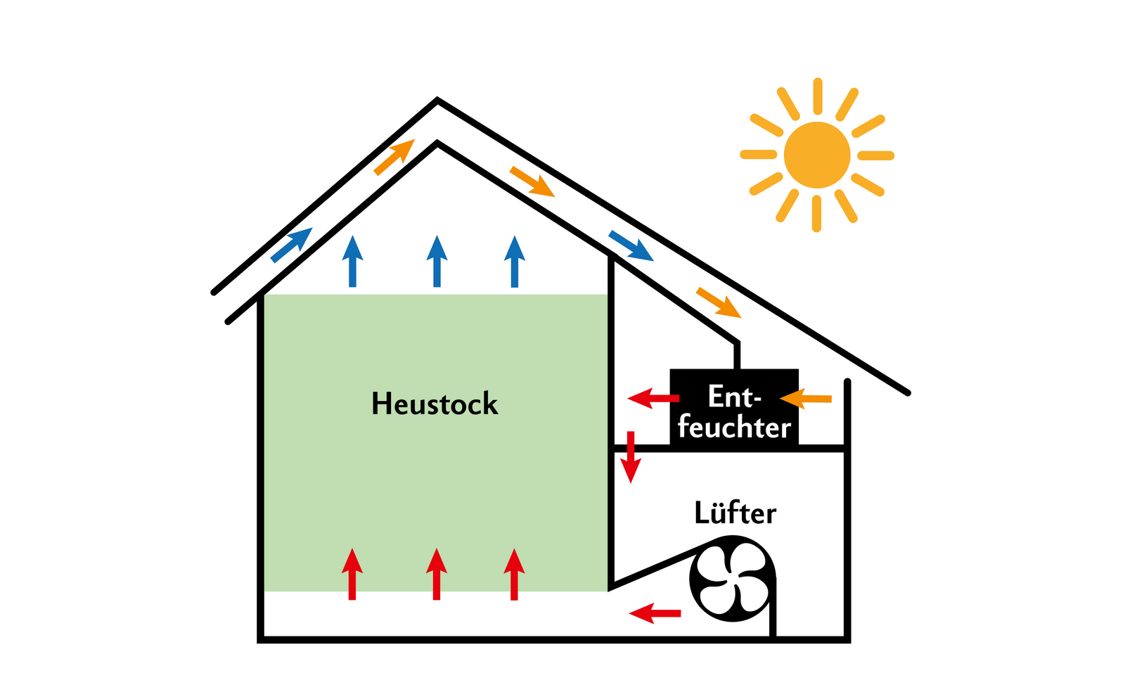 «Grundsätzlich gilt: Je wärmer die Luft ist, desto höher ist ihre Wasseraufnahmekapazität. Deshalb ist es effizienter, das Dürrfutter mit Warmluft zu trocknen statt mit Kaltluft», erklärt Rebekka Gerber. Warmluft braucht aber mehr Energie. Deshalb ist es wichtig, sich bei der Wahl einer Anlage folgende Gedanken zu machen: