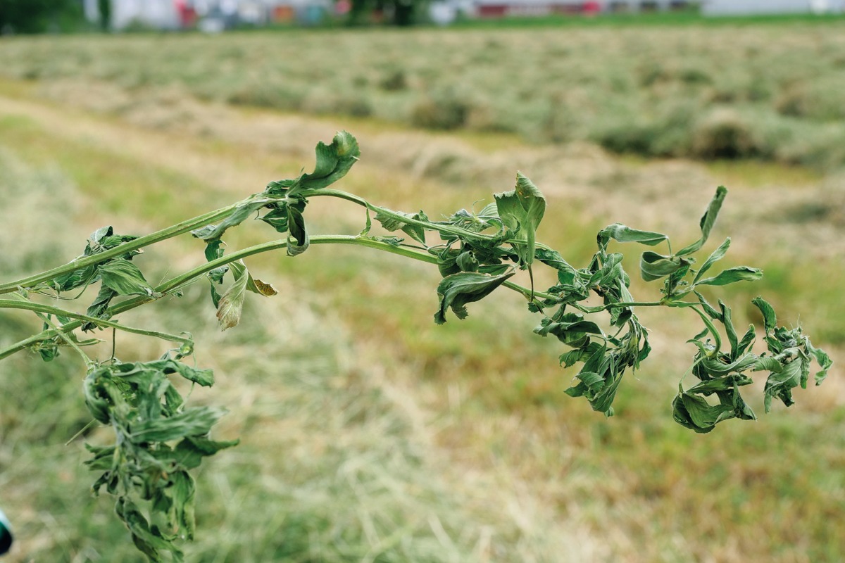 Bürgi ergänzt: «Ich erkläre mir das durch die groben Stängel der Luzerne, welche wie eine Armierung wirken.» Bürgi lässt das Mähgut im Anschluss einen Tag liegen. Der Schwad wird auf den groben Stängeln der Mähstoppel gut unterlüftet.