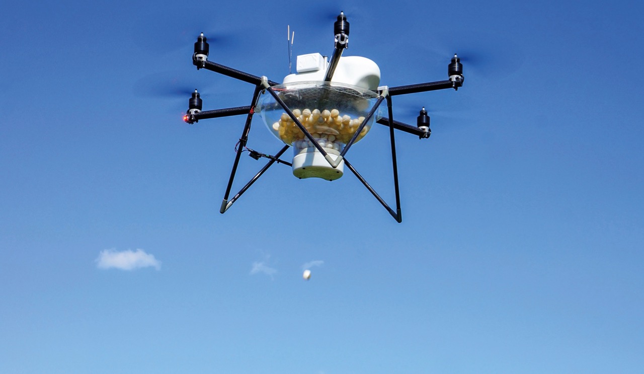 Mit der Drohne, die in drei Minuten 100 Kugeln pro Hektare abwirft ist Agroline Bioprotect ein Pionier in der Schweiz und liegt damit europaweit an der Spitze der Innovationen.