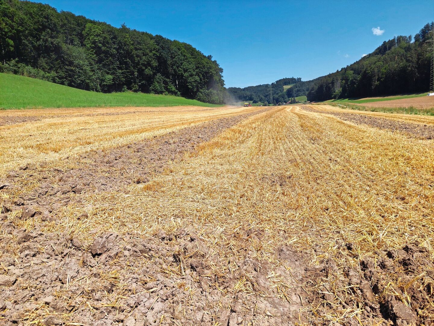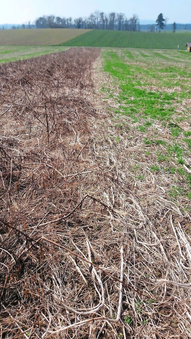Darüber hinaus kann durch die sofortige Neuansaat mittels Direktsaat die Restfeuchte im Boden ausgenutzt werden, wodurch die Gründüngung auch in trockenen Sommern wie im Jahr 2023 gut aufläuft. Ausserdem kann die Gründüngung dank dieses Verfahrens bis zur Gerstensaat noch genügend Grünmasse bilden.