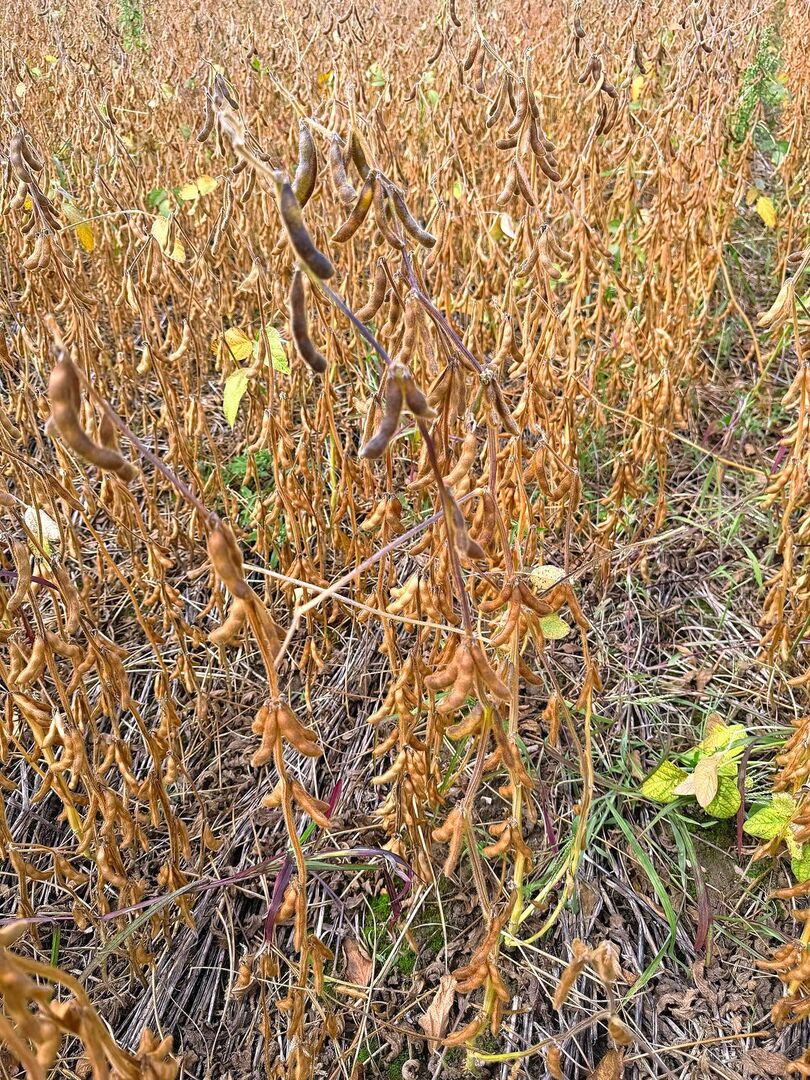 Im August 2025 fand die Weizenernte aus dem Staffelkulturanbau statt. Leider wurde der Weizen im Staffelkulturanbau etwas zu tief gedroschen, weshalb das Soja dort zu stark heruntergedrückt wurde. Dieses hat sich auch Wochen später nicht mehr ganz von der Ernte erholt.