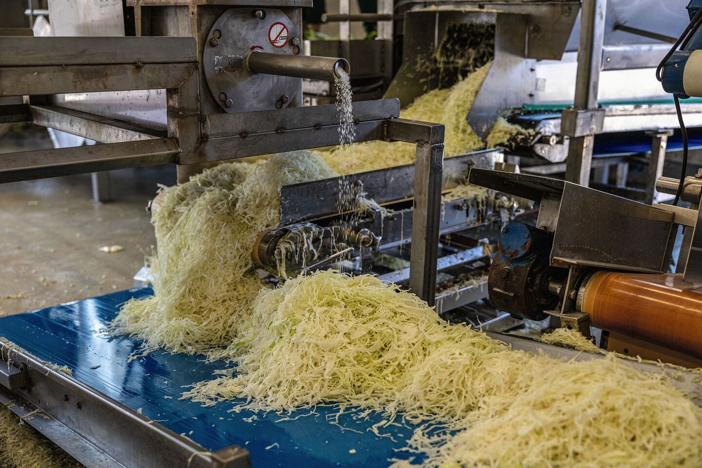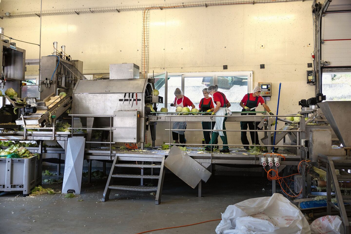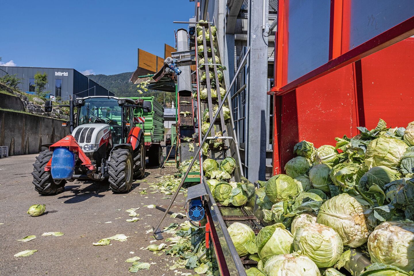 Trotz der in der Zwischenzeit gestiegenen Produktionskosten ist für die aktuelle Ernte keine Preiserhöhung vorgesehen. «Wir konnten uns im Januar mit den Landwirten und Lieferanten auf die bestehenden Konditionen einigen», erklärt Schöni. Einige Produzenten kamen mit dem Wunsch zu Schönis, nicht mehr selbst rüsten zu müssen. Früher wurde der Kabis «weissgeputzt» angeliefert. Doch in der Landwirtschaft ist zunehmend Personalmangel festzustellen. Deshalb hat Schöni seit dem letzten Jahr eine Rüststrasse in der Fabrik, welche mit internen Mitarbeitern geführt wird. Fürs Rüsten werden jeweils 2.20 Franken pro 100 kg abgezogen.