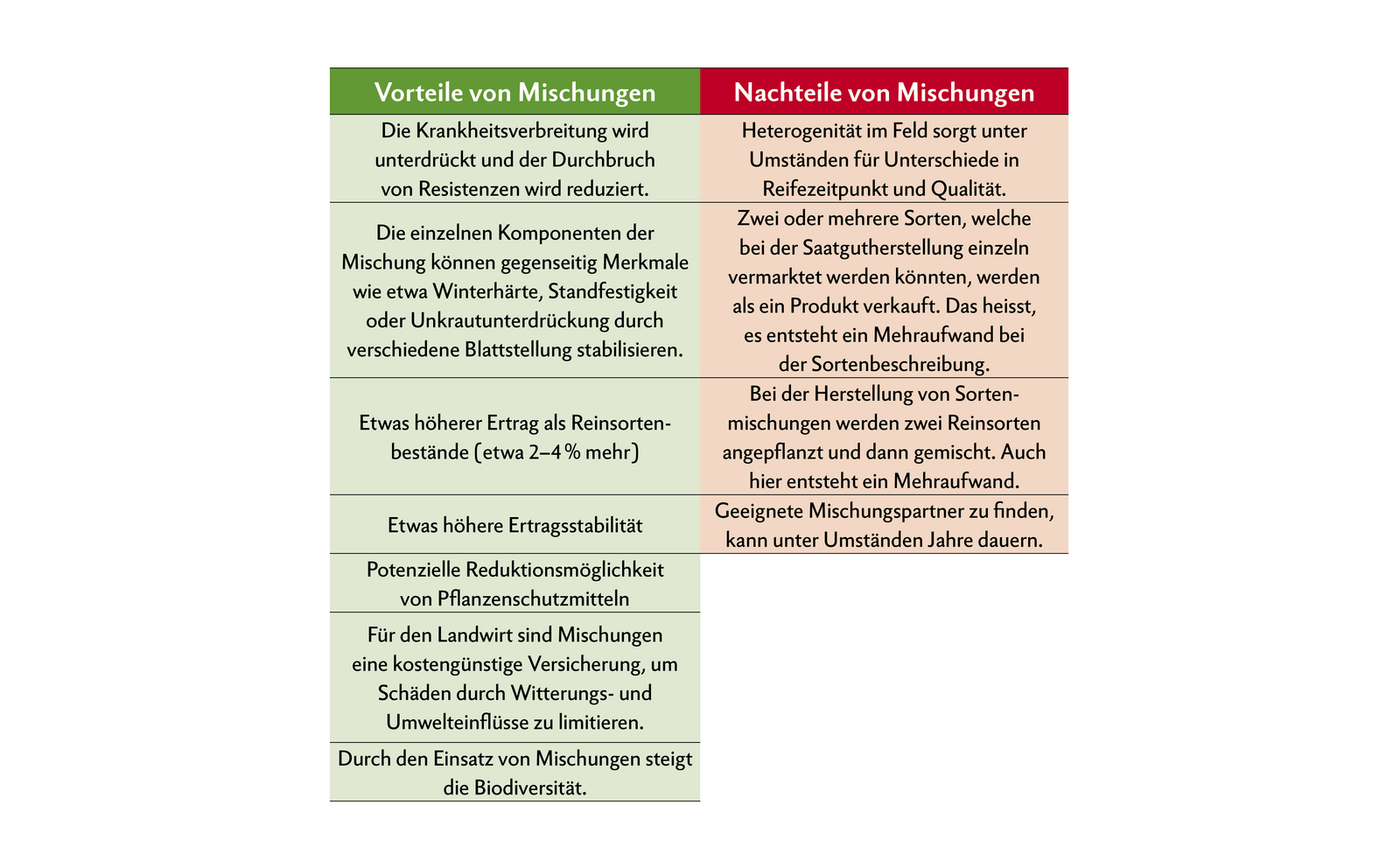 - Durch das Anpflanzen von Sortenmischungen kann der Einsatz von Pflanzenschutzmitteln reduziert werden.