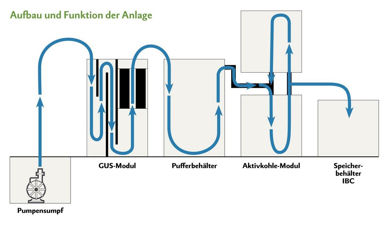 Das Amt für Wasser und Abfall AWA und das Amt für Gemeinden und Raumordnung AGR im Kanton Bern empfahlen ihm, eine Aktivkohle-Reinigungsanlage anzuschaffen. Die Anlage ist ein Schweizer Produkt und wurde von der Firma Creabeton in Zusammenarbeit mit der Ostschweizer Fachhochschule entwickelt. Es gibt eine oberirdische und neu teilweise erdverlegte Variante. Die Kunststofftanks werden im Berner Oberland produziert.