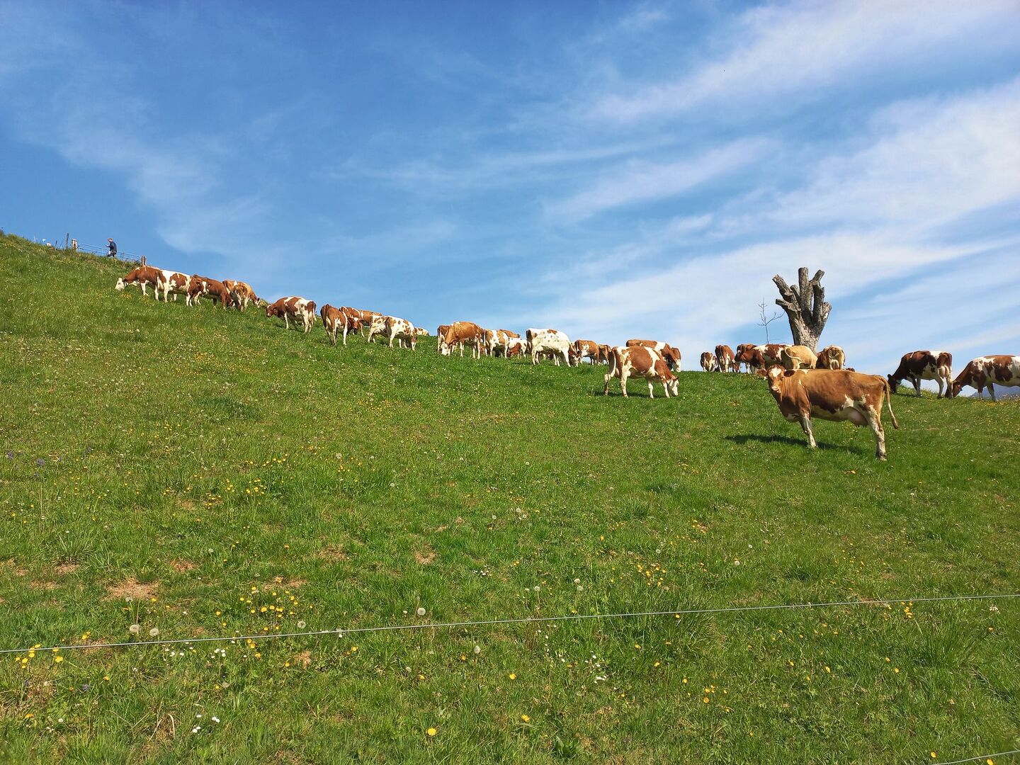 Tierbestand: 58 Milchkühe (SF), 30 Mast- und Aufzuchttiere