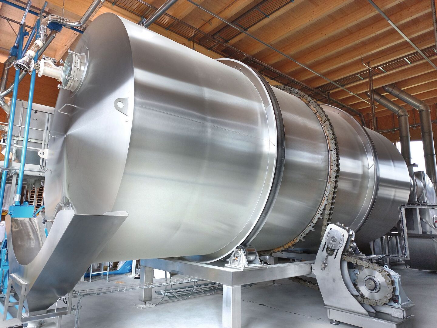 In einer der drei Keim-Darr-Trommeln keimt die Gerste während vier bis fünf Tagen. Durch die Keimung werden Enzyme aktiviert, welche die Stärke in Zucker umwandeln. Das ist dann später beim Brauen für die alkoholische Gärung wichtig.