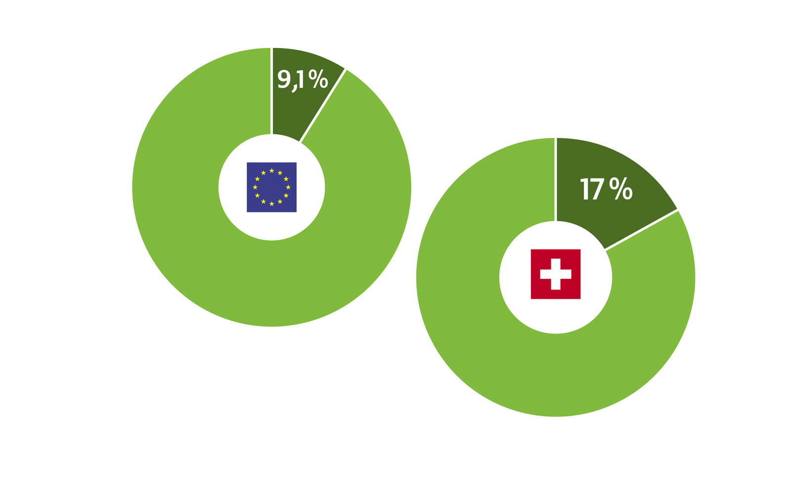 In der Schweiz werden17 % der Landwirtschaftsflächen biologisch bewirtschaftet.