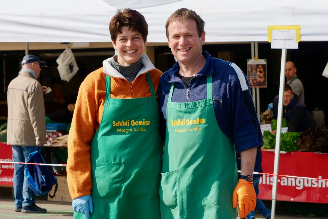 «Nächster bitte!» Am Marktstand herrscht geschäftiges Treiben. Sack um Sack wird mit frischen Frühlingssalaten und den ersten Tomaten dieser Saison gefüllt, aber auch mit Lagergemüse. Die Welt scheint bei Schiblis in Ordnung zu sein. Nur die grossen Abstände zwischen den Menschen und die Markierungen am Boden lassen darauf schliessen, dass wir uns mitten in einer Pandemie befinden.
